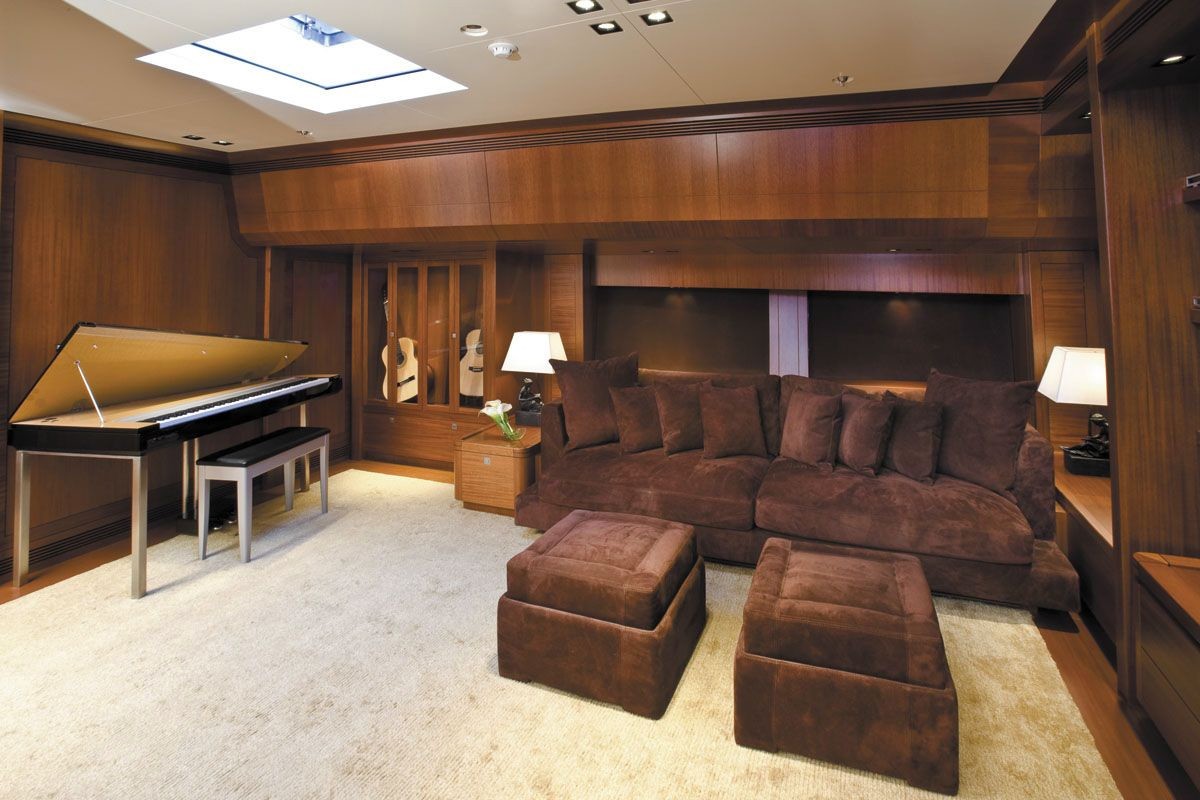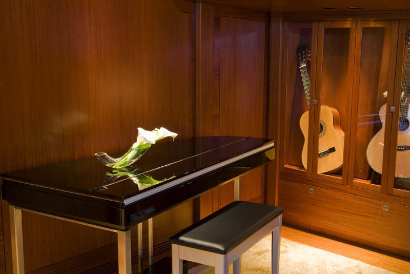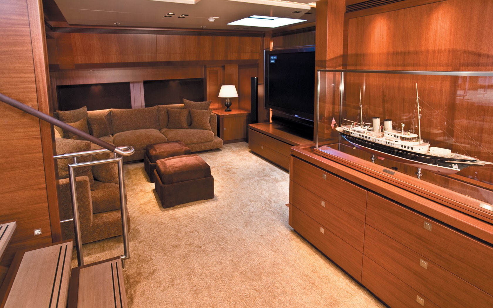 ETHEREAL has the perfect blend of traditional, classic and modern yacht lines. The design brief was to push the edges of current knowledge to create a yacht which can not only operate independently but also energy-efficiently for extended period of time. Her hybrid electromechanical propulsion system allows the yacht to charge its technically advanced bank of lithium polymer batteries while under sail instead of using generators. This energy bank enables sailing yacht ETHEREAL to raise anchor, motor, hoist sails and run ship’s systems under stored electrical power. The automation system is another unique feature of this exceptional yacht. The yacht consists of 21 computers that control the alarm and monitoring system. Out of 21, 18 custom PC based room controllers maintain the room’s environment by operating air-conditioning, lighting, shades and display yacht information, charts and cameras. The rest of the computers are available for guest use in the Master cabin and Guest study.