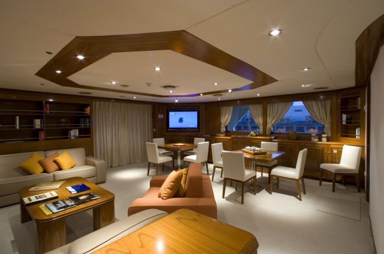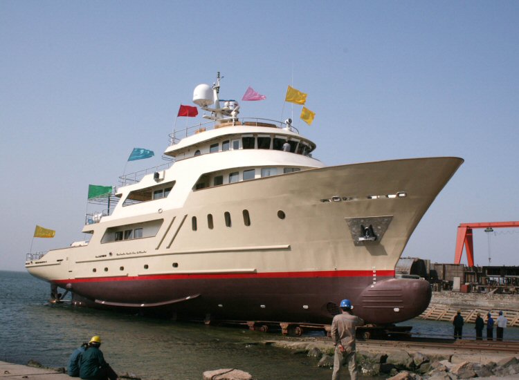 ETRA is an important example of construction in China made by a European Company. The vessel built in a shipyard located in the North of China, was produced by highly qualified and skilled Chinese labourers. The Raw materials and furnishing came from China however the styling, design and the project are conceived in Italy and totally custom-made. In 2008 the yacht had a complete refit o the stern and other works. She was lengthened from 45.5M TO 48M AT Benetti Azimut, Lusben shipyard is Viareggio.