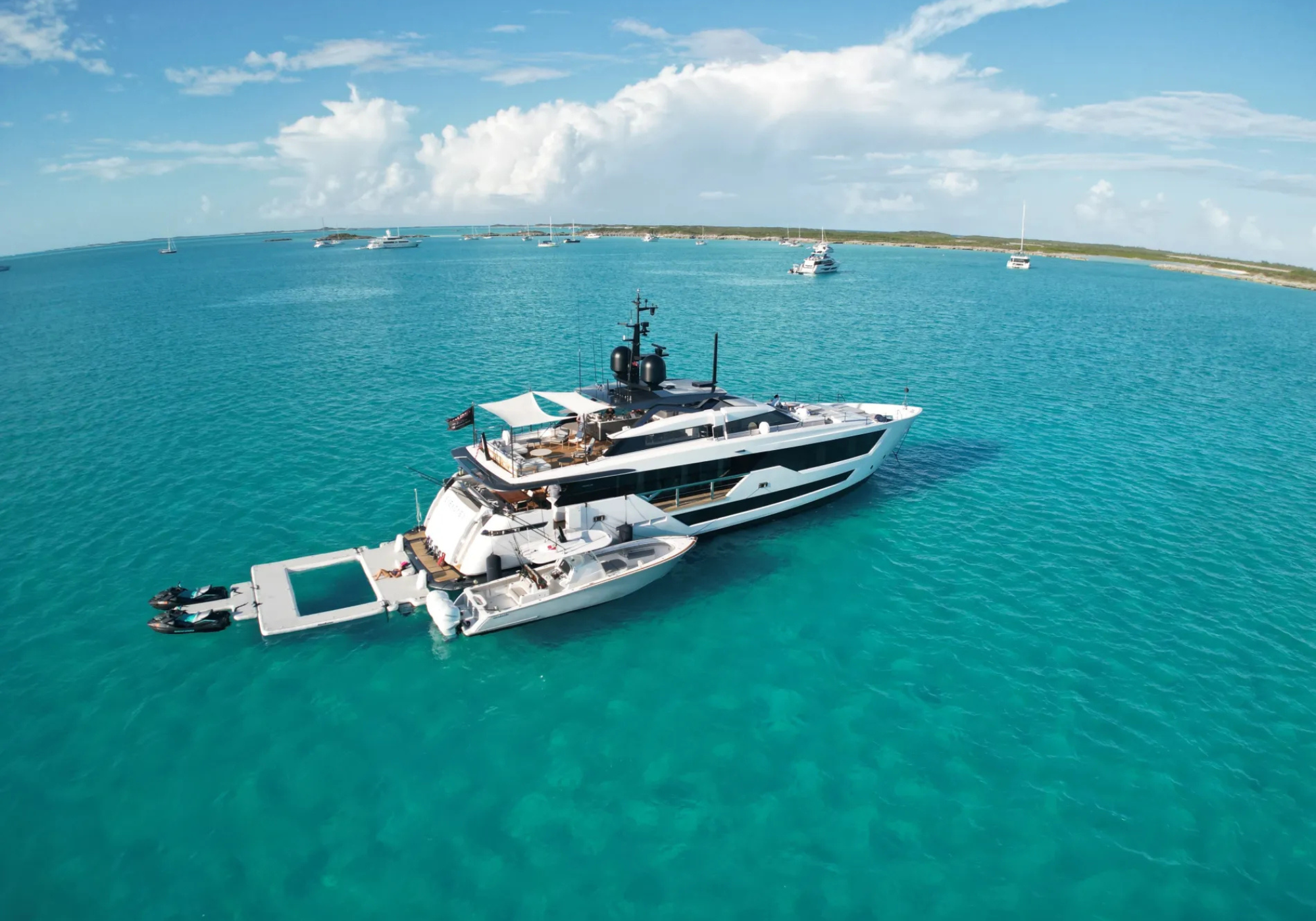 Tenders & Toys: ~1 x Valhalla V-37 tender (11.2 m) ~1 x Jet ski Seadoo GTR 230 2025 ~1 x Jet ski Seadoo GTR 230 2026 ~2 x Paddle Boards ~Jellyfish Pool ~Inflatable Swimming Platform with Jetski Dock ~Diving and Snorkeling Gear (multiple sizes) ~Fishing Gear for Trolling & Bottom Fishing ~Drone Audio Visual Equipment and Deck Facilities: ~EVEXIAS I features a comprehensive audio-visual entertainment system, including Smart TVs with SAT TV access in the main salon and all guest cabins. ~Guests can enjoy a dedicated TV in the salon as well as TVs in all cabins, offering a wide selection of content through an extensive music library and movies library. A high-quality indoor and outdoor sound system is installed throughout the yacht, complemented by full Bluetooth speakers and sound system connectivity. Communications: ~Starlink internet and a fully integrated WiFi network accessible throughout the vessel. ~Included in charter price.