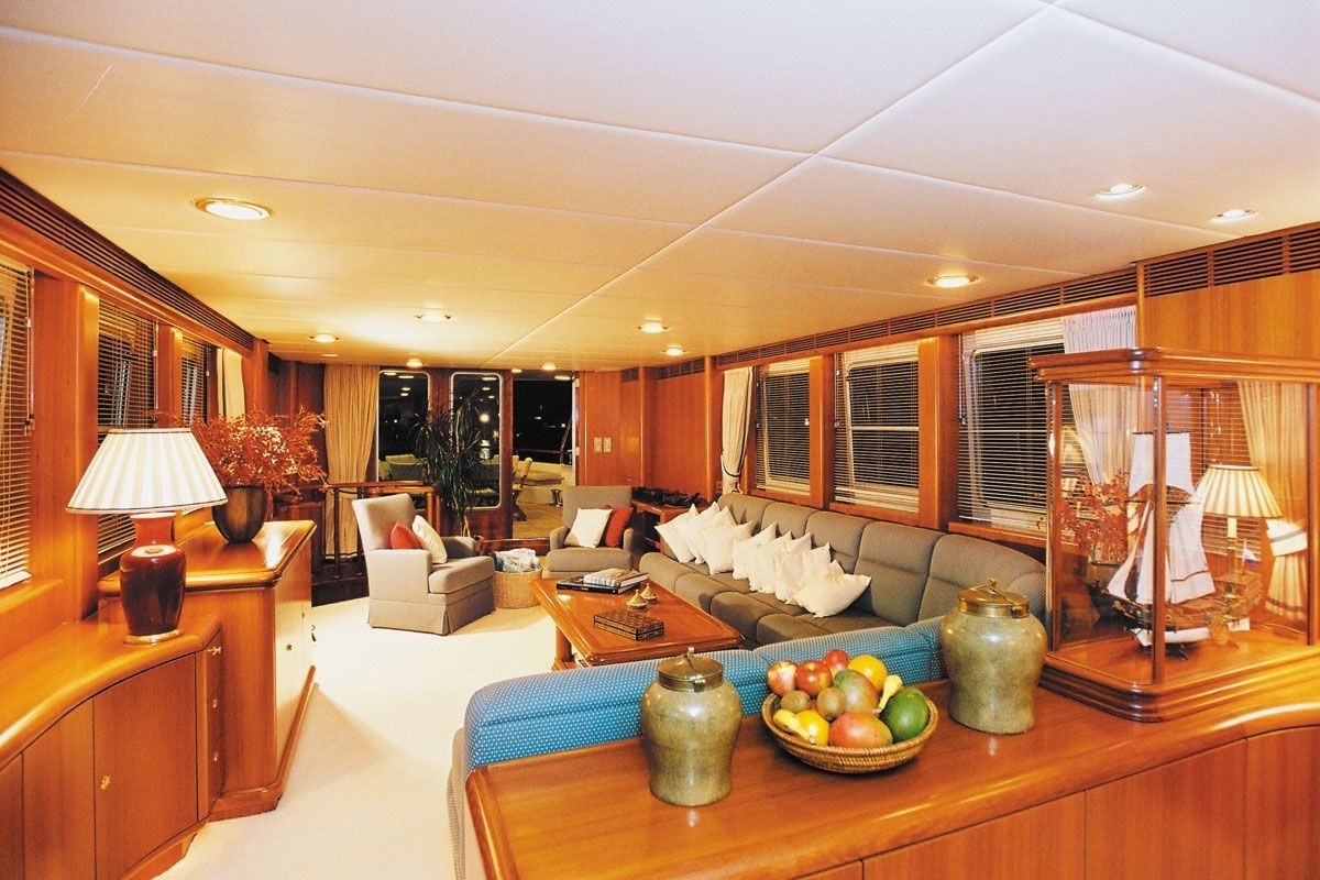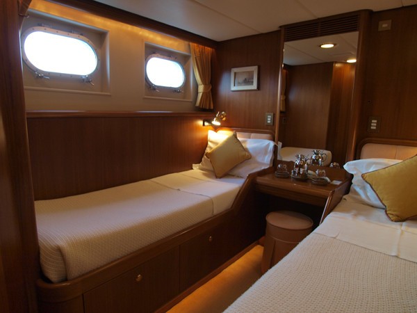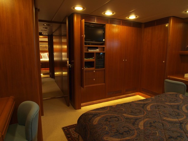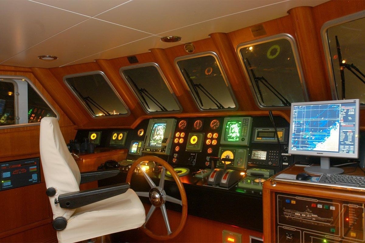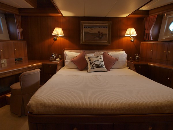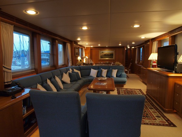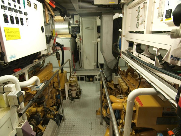 She is driven by twin quality CATERPILLAR diesel engine(s) and can accelerate to a swift top end speed underway of approximately 13 knots. The main engine of the ship generates 402 horse power (or 399 kilowatts). Her total HP is 804 HP and her total Kilowatts are 798. She is driven by twin screw propellers. As for the yacht’s stabalisers she utilises Vosper. With respect to bow thruster maneuverability she utilises Cramm. Her efficacious cruising speed is 11 knots which provides a range of 2200.