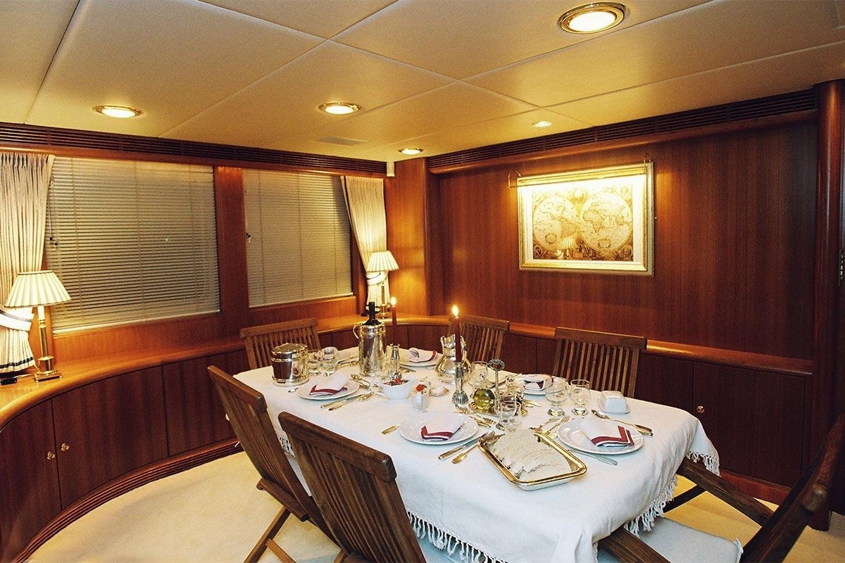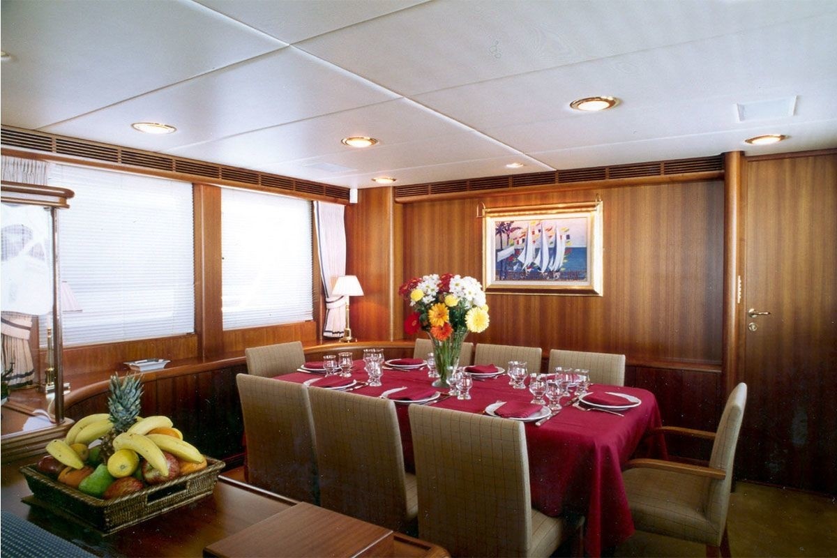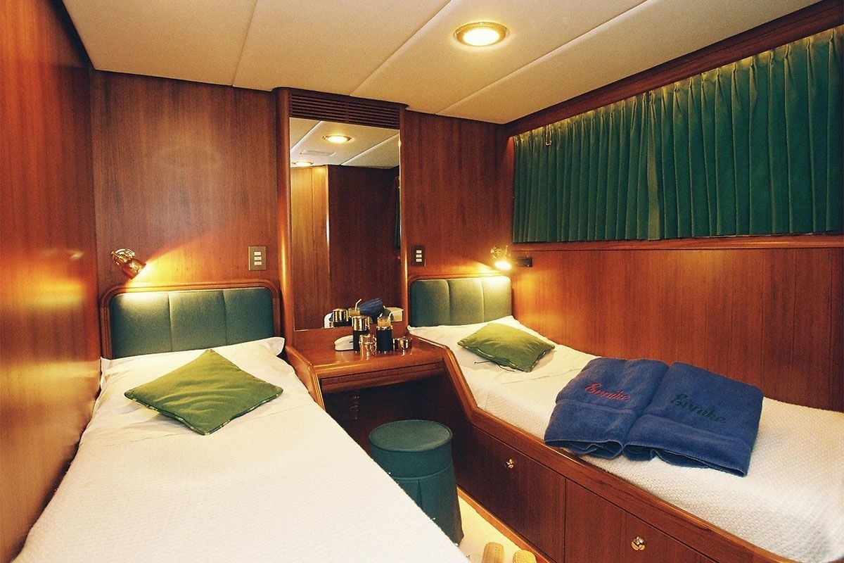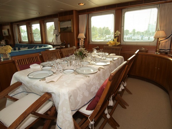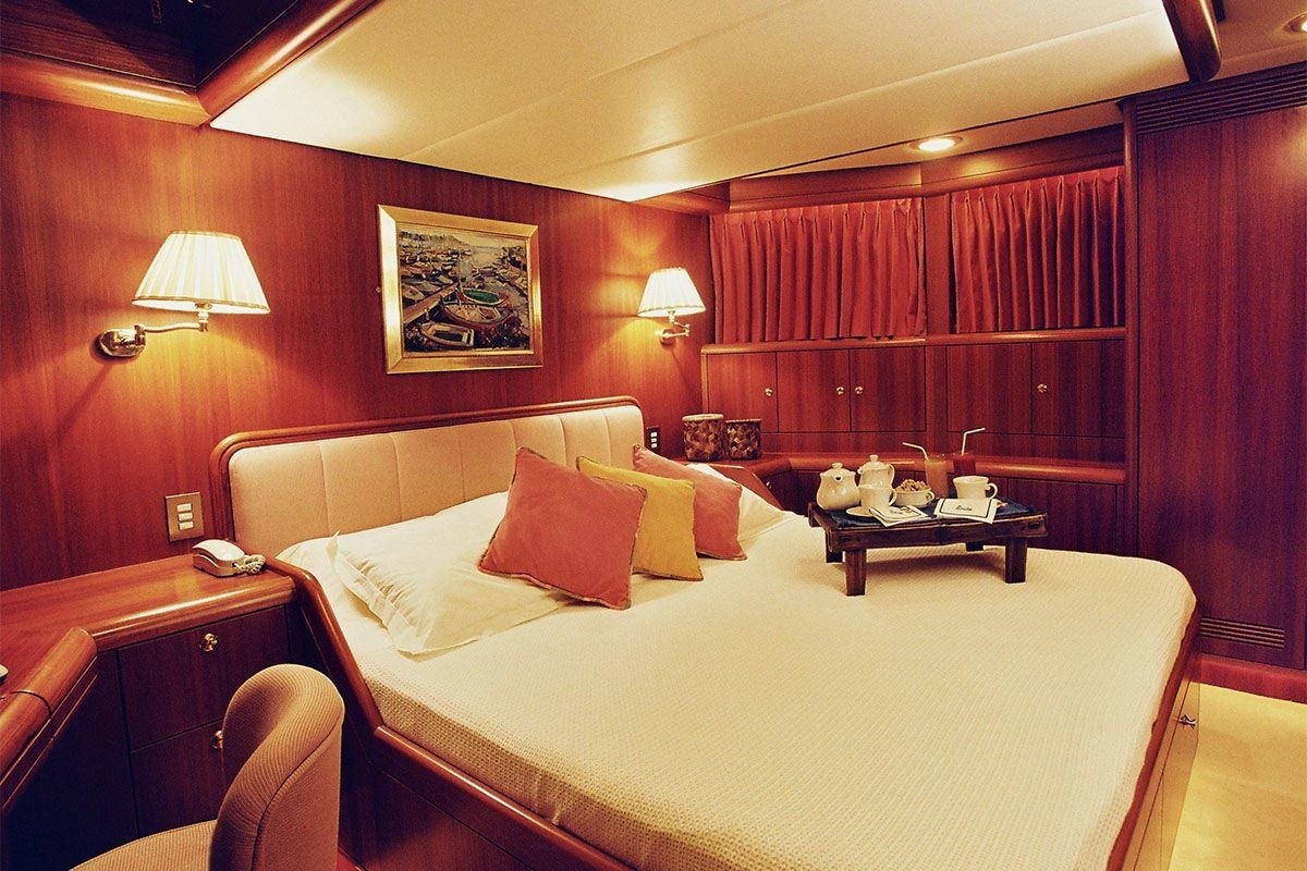 She is driven by twin quality CATERPILLAR diesel engine(s) and can accelerate to a swift top end speed underway of approximately 13 knots. The main engine of the ship generates 402 horse power (or 399 kilowatts). Her total HP is 804 HP and her total Kilowatts are 798. She is driven by twin screw propellers. As for the yacht’s stabalisers she utilises Vosper. With respect to bow thruster maneuverability she utilises Cramm. Her efficacious cruising speed is 11 knots which provides a range of 2200.