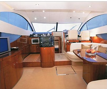 The Fairline Phantom 50 excels in design both inside and out. The salon is beautifully finished although conventional in design, whereas the galley is anything but conventional. Designed to keep the chef completely involved, the cook has almost the same view as the captain – he cook either chat to his guests in the salon or navigate his next course!