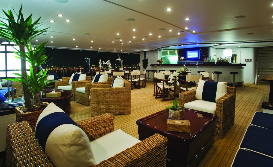 Having volume for a limit of 12 visiting passengers spending the night, the FORCE BLUE accommodates them in luxury. She also carries circa 10 professional qualified crew to maintain and sail.