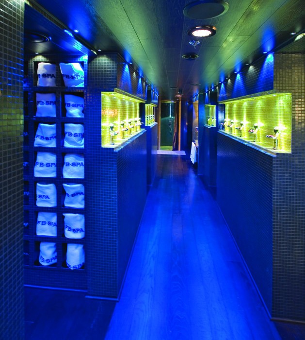 Tom Fexas was the naval architecture company involved in the professional superyacht composition for FORCE BLUE. Also the company Tom Fexas and Ole Steen Knudsen expertly worked on this venture. Interior designer Ole Rune Design/Christensen & Rottbell was charged with the overall internal ambience. Built at Royal Denship - Assens Shipyard this vessel was constructed in Denmark. She was successfully launched in Aarhus in 2002 before being delivered to the owner. The main hull was constructed with steel. The motor yacht superstructure component is fabricated extensively from aluminium. With a beam of 11.4 metres / 37.4 ft FORCE BLUE has fairly large room. She has a fairly deep draught of 3m (9.8ft). She had refit maintenance and alteration work undertaken in 2008.