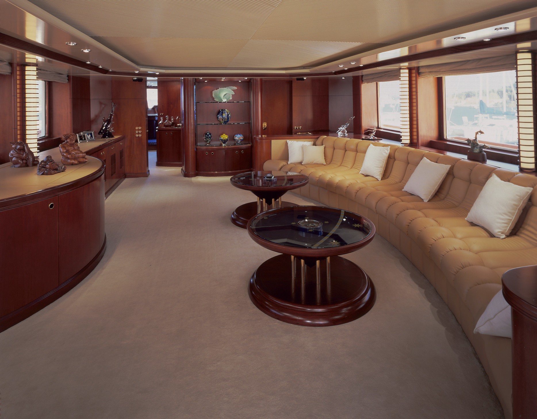 Fratelli Benetti was the naval architect involved in the technical vessel design work for FRANCINE. Also the company Fratelli Benetti and Ray Harvey and George Nicholson and Tom Fexas expertly worked on this undertaking. Interior designer Terence Disdale Design / Manuel Castedo was charged with the overall interior styling. Italy is the country that Benetti Yachts completed their new build motor yacht in. After the official launch in 1989 in Viareggio she was passed over to the yacht owner having completed sea trials. The core hull was built out of steel. The motor yacht superstructure component is fabricated for the most part from aluminium. With a beam of 7.8 m / 25.6 ft FRANCINE has moderate room. She has a fairly shallow draught of 2m (6.6ft). She had refit maintenance and alteration work undertaken in 2008.