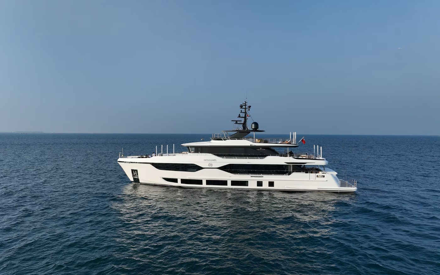 Built by Gulf Craft, GEULUNEL is a meticulously crafted Majesty 120 motor yacht, measuring approximately 37 metres and delivered in 2025. With sleek, contemporary lines by Gulf Craft and sumptuous interior styling by Cristiano Gatto Design, she exudes a sense of modern elegance and serene sophistication. Designed to accommodate up to 12 guests across six cabins and supported by a dedicated crew of seven, GEULUNEL blends refined comfort with thoughtful design throughout her expansive layout.