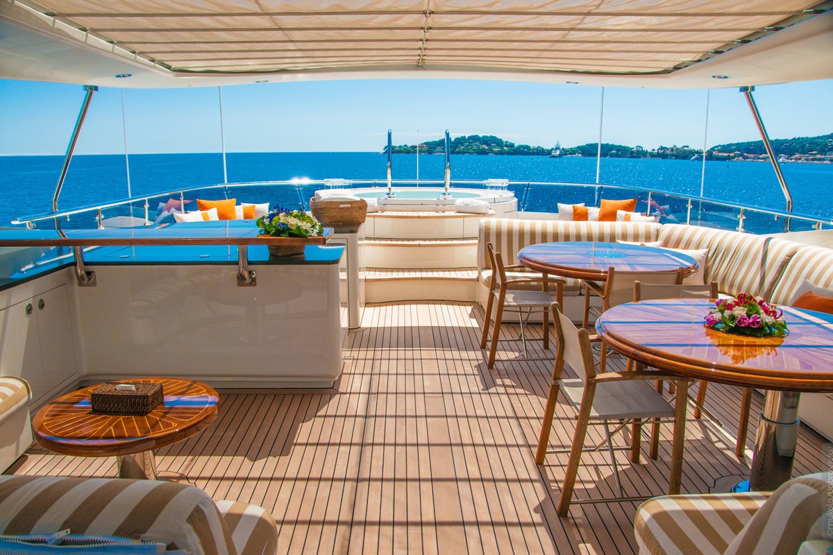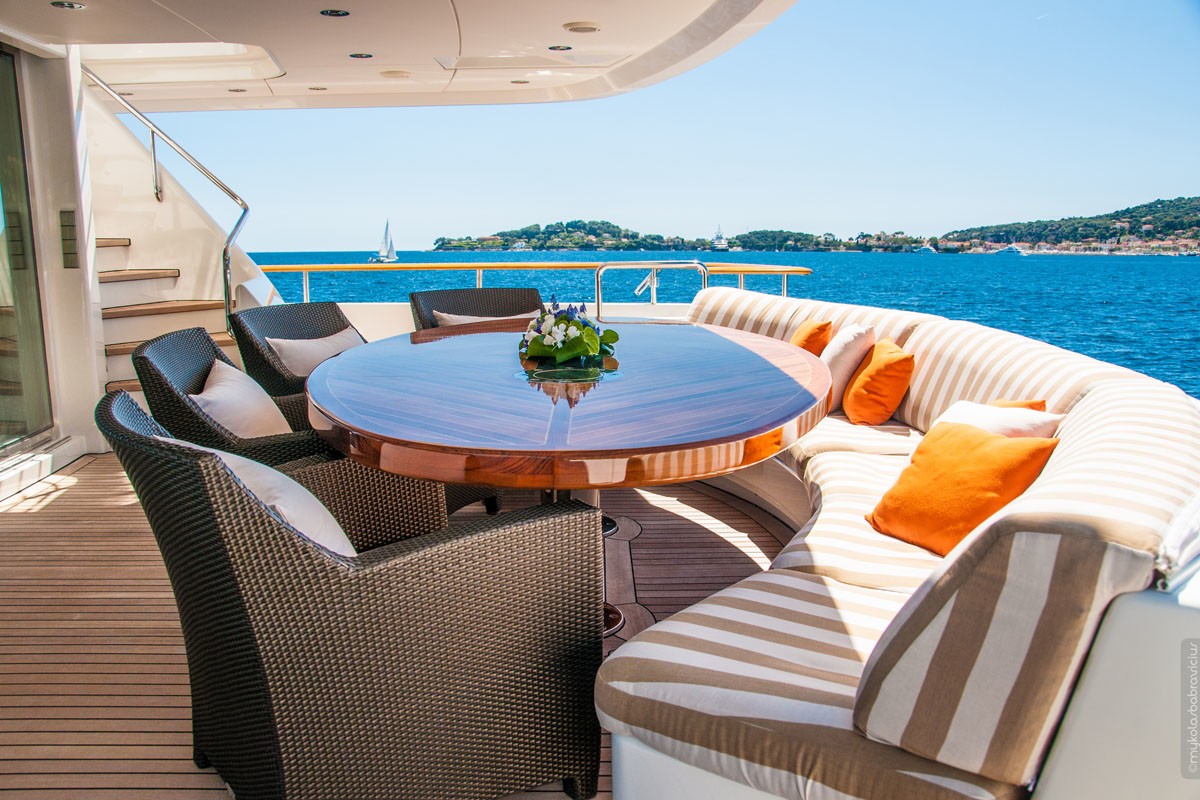 Izar was the naval architect firm involved in the professional vessel plans for GLORIA TERESA. Also the company Izar skillfully worked on this project. Interior designer Reymond Langton Design was responsible for the creative internal ambience. In 2006 she was actually launched with celebration in San Fernando and following sea trials and detailing was afterwards delivered to the owner. Navantia - n Fernando Shipyard (Ex - Izar) completed their new build motor yacht in Spain. A spacious proportion is achieved with a widest beam (width) of 8.2 metres / 26.9 ft. With a 2.15m (7ft) draught (maximum depth) she is fairly shallow. The material steel was used in the building of the hull of the motor yacht. Her superstructure above deck is created out of aluminium.