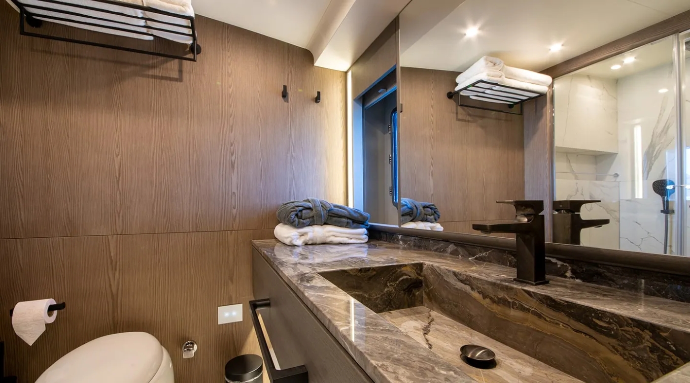 The guest accommodation aboard GOOD LIFE includes: ~ 4 x Double cabins with queen-sized beds, each with ensuite bathroom and wardrobe space ~ 1 x Additional double cabin, also ensuite, ideal for couples or guests seeking added privacy All cabins feature soft neutral finishes, atmospheric lighting and smart storage solutions for extended stays.