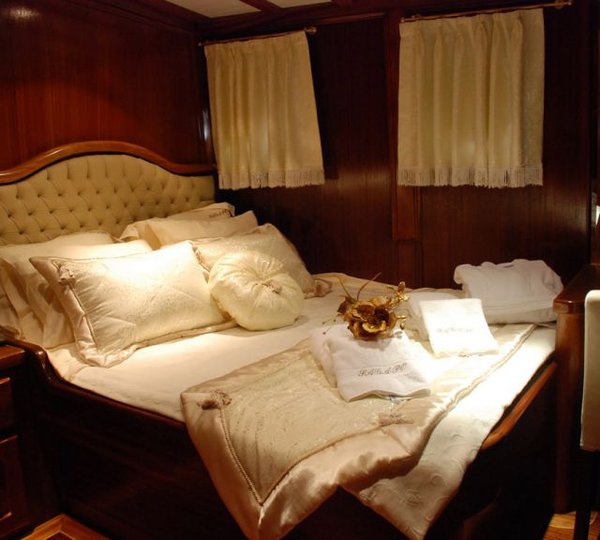 Luxury Gullet Sagapo accommodates twelve guests in six cabins. She has two huge master cabins with ensuite bathrooms as well as two generous doubles and two twin cabins. All guest cabins are air- conditioned and have ensuite bathrooms.
