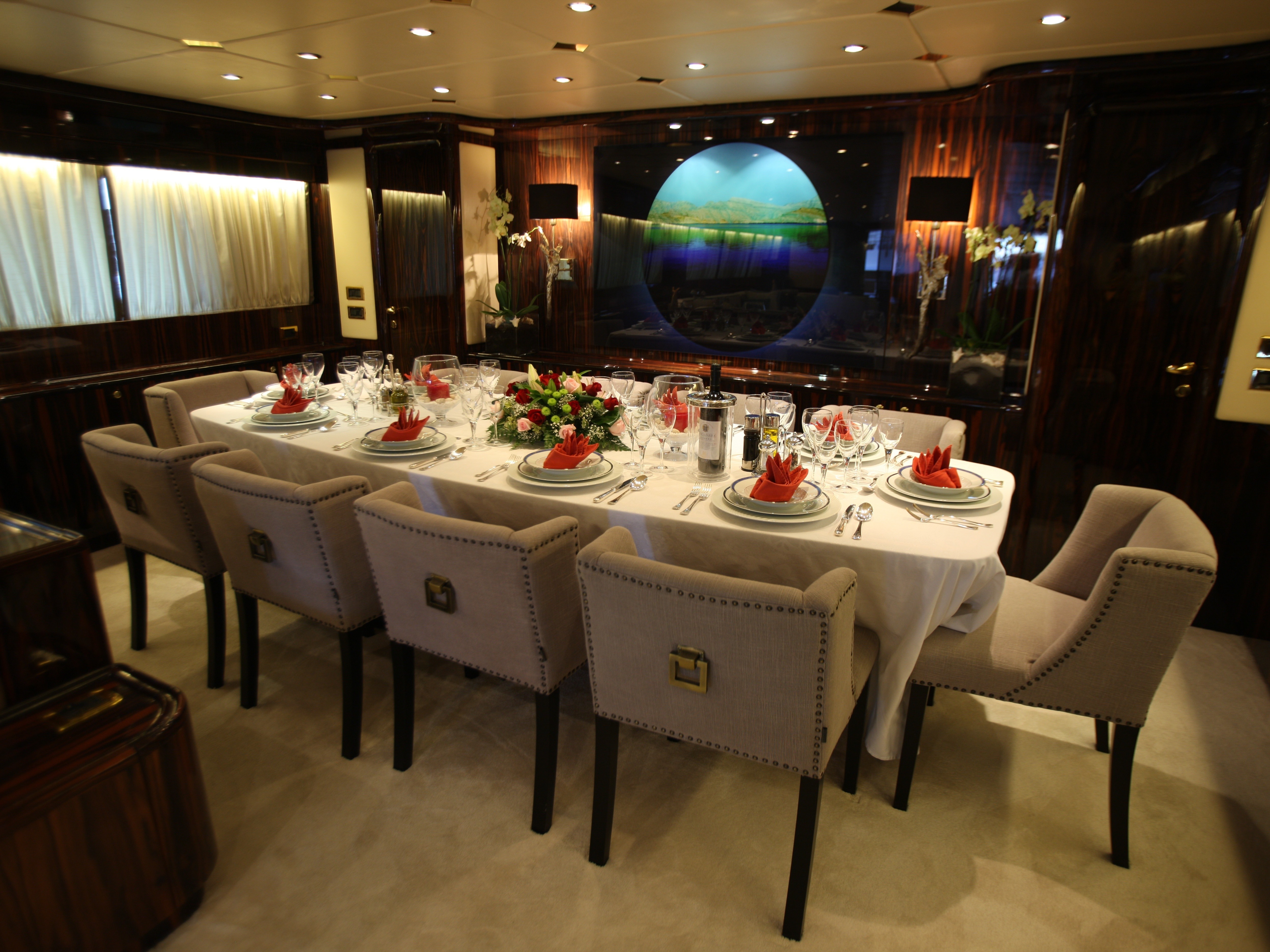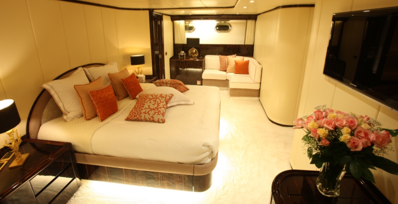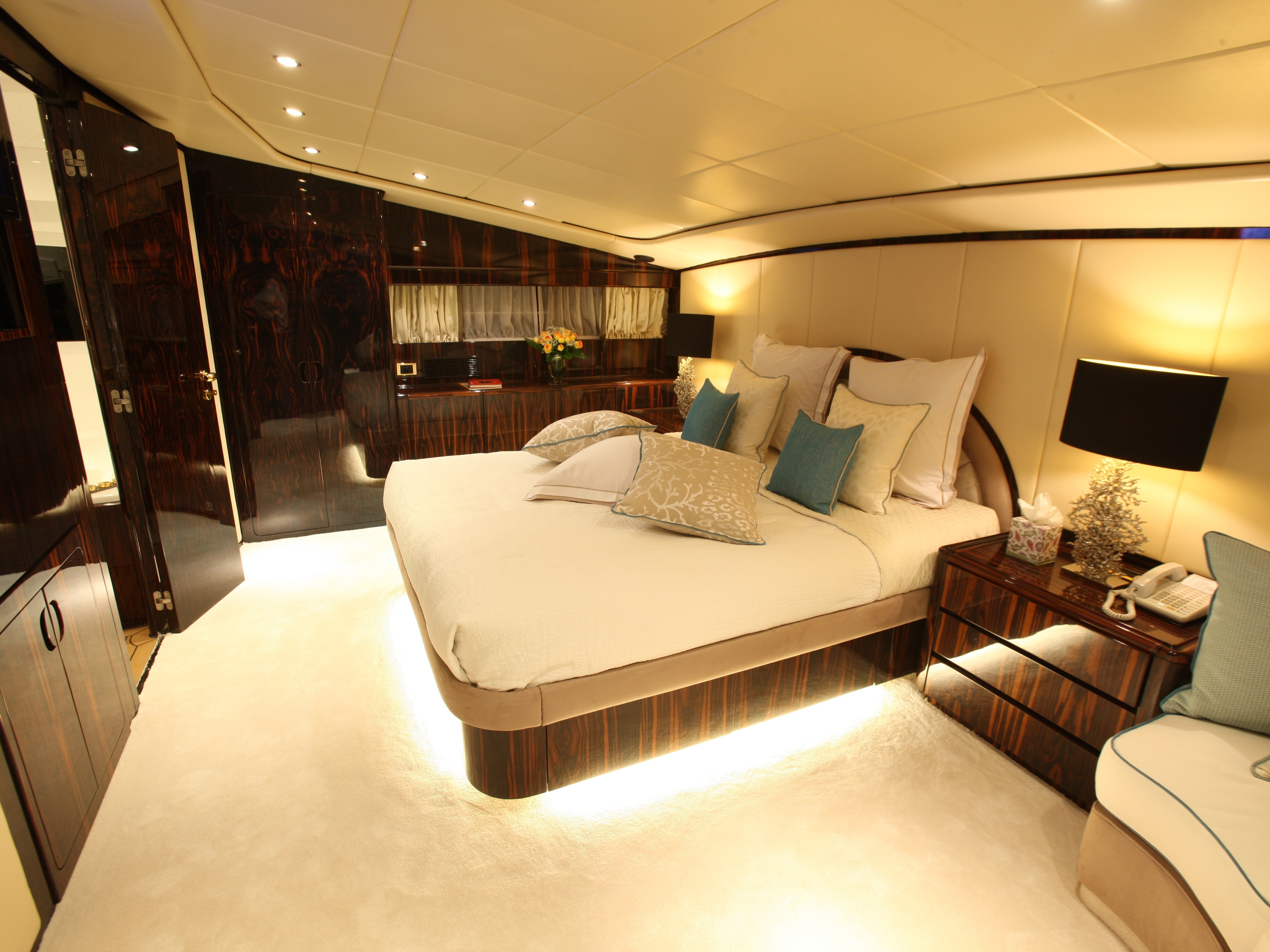 The spacious luxury yacht motor yacht HEMILEA can accommodate up to 12 passengers in addition to 7 crew.