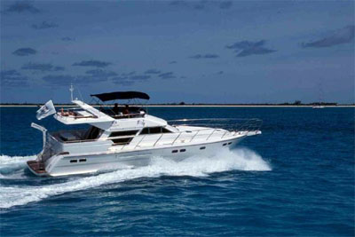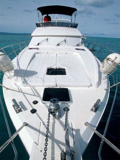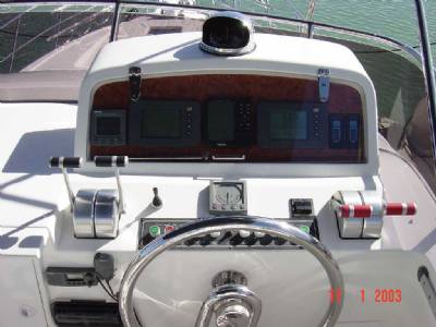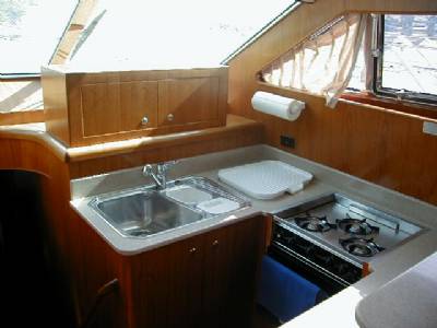 The Horizon 56 has all electonic equipment including GPS and depthsounder. On deck there's an electronic anchor winch, dual helm stations, flybridge bimini and sunbeds, swimming platform with shower, BBQ and 12 ft dinghy with 15 hp outboard. The interior is airconditioned with a fully equipped galley with microwave, stovetop and oven and fridge/freezer. Entertainment systems include a radio and CD player with indoor and outdoor speakers and a televison and VCR in the salon and the aft cabin.4 Double Cabins with Full Queen Berths 15 Knots Cruising Speed Full Width Swim Platform Air-Conditioning Throughout Spacious Fly-Bridge with Bimini Shaded Aft Deck Dining Area Lots of On Board Storage 4 Showers. 3 Heads Superb Swim Platform with Sweep-down Sea Stair.... LOA: 56' Flybridge Bimini Beam: 15'2" Cellphone with International & local availability Draft: 3'6" AM/FM Radio Engines: Twin Caterpillar Diesels CD Player with Interior & Exterior Speakers Cruising Speed: 15 Knots Console mounted GPS Speed, Depth & Log Diesel Fuel: 750 Gallons Hot & Cold Water Hull Type: Semi Displacement Separate Fridge & Freezer Cabins: 4 with Queen sized berths Microwave Oven Sleeps: 8 Propane Oven & Stove Heads: 3 Blender Showers: 4 (inc the 1 on Transom) Sundeck Hard Top 12Kw Genset Sundeck Table & Chairs Electricity: 110v/60hz BBQ Bowthruster Sun Bed on Bow and aft upper deck Hydraulic Trim Tabs TV/VCR Salon and Aft Cabin Dual Helm Stations, Upper and Lower 12' Rigid Inflatable Dinghy & 9.9 HP Motor Electric Windlass Twin Anchors Other dinghy's available as option VHF Marine Radio Electric Dinghy Crane on Transom Air Conditioning throughout Tie down dinghy transit on Swim Platform