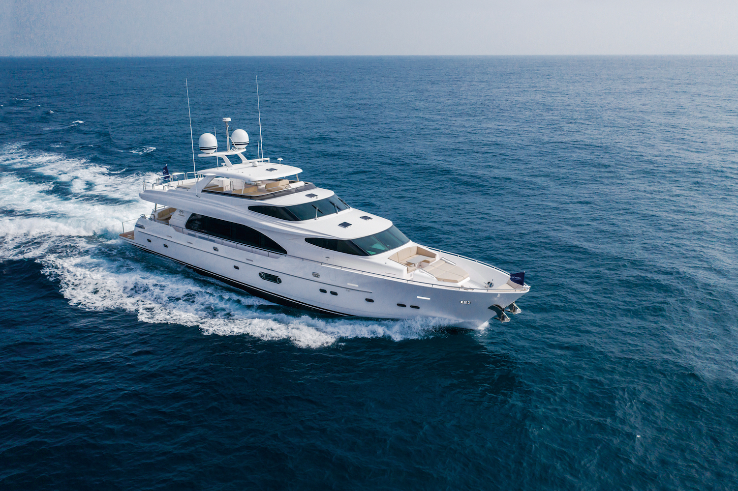 NOTABLE FEATURES OF RP100: ~ Great selection of sunbathing areas ~ Elegant modern interiors ~ Flybridge bar ~ Top speed of 21 knots ~ Range of 1,300 nautical miles ~ Air conditioning ~Wi-Fi