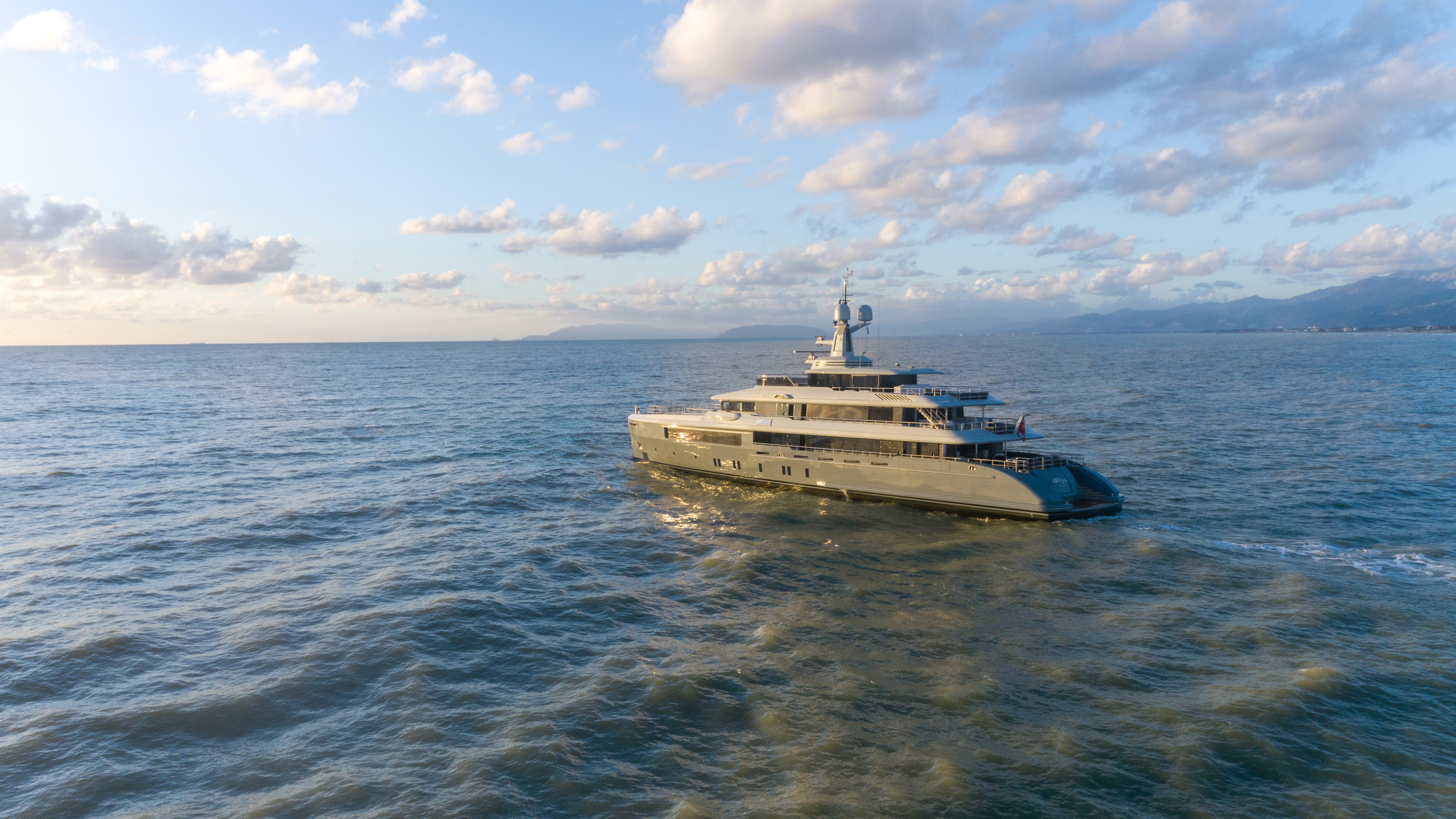 A pair of Caterpillar 3516E 2525 kW engines give a top speed of 21 knots at light displacement, and when cruising at 12 knots HULL C127 has a globe-trotting cruising range of 6,000 nautical miles.