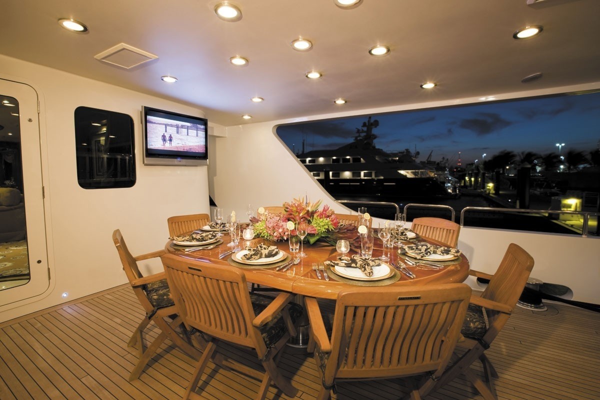 Offering bedding for a limit of 10 welcome guests sleeping aboard, the INCENTIVE accommodates them luxuriously. Under normal conditions she requires around 7 expert yacht crew to operate.