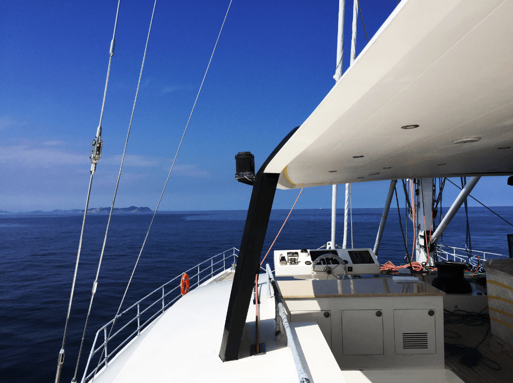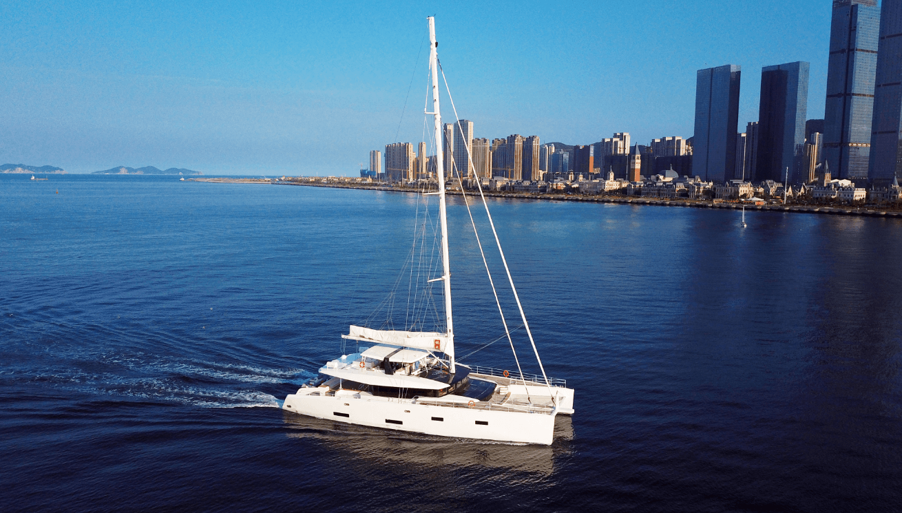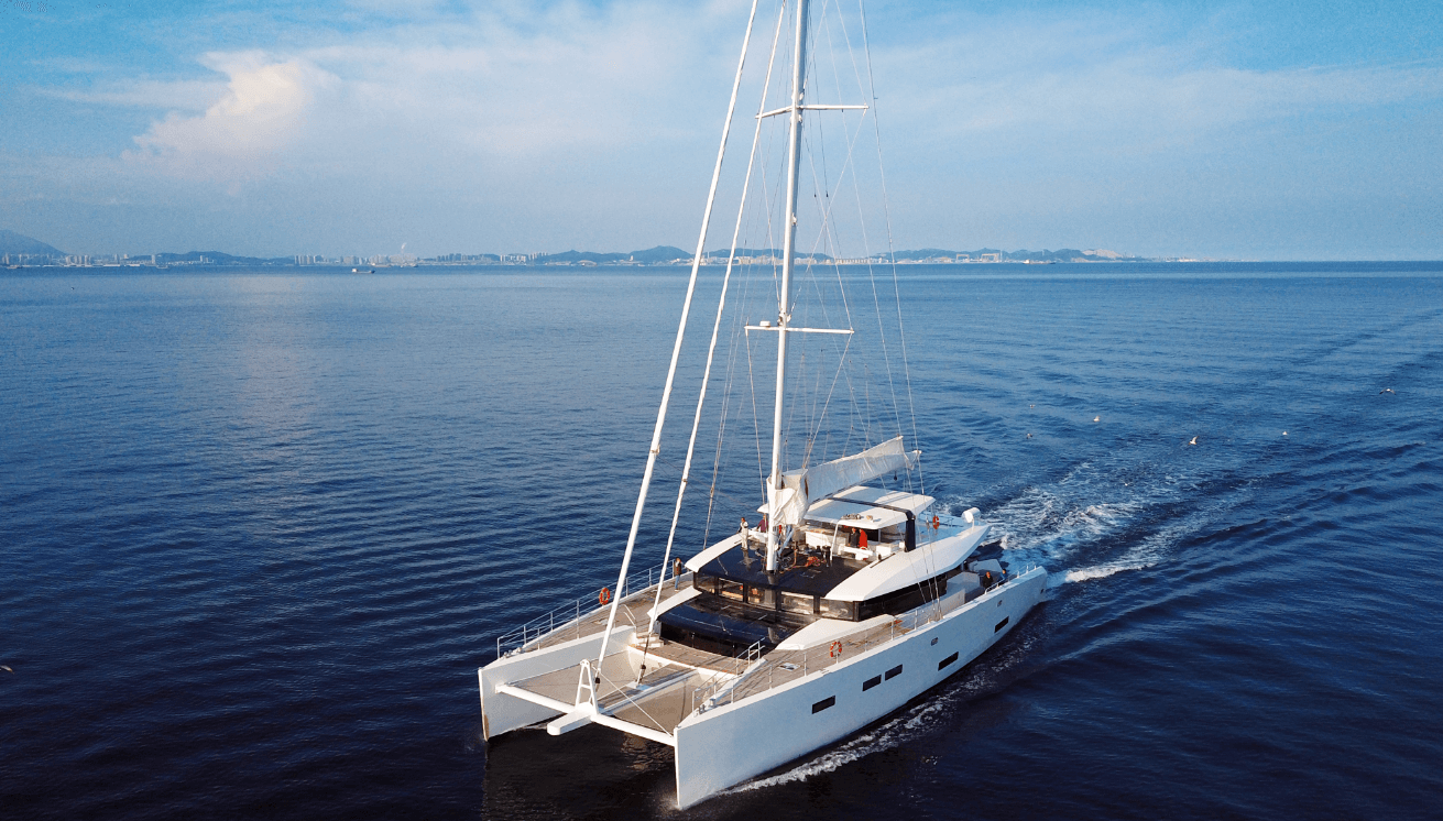 The wide and stable hull of the catamaran provides safe and smooth cruising.
