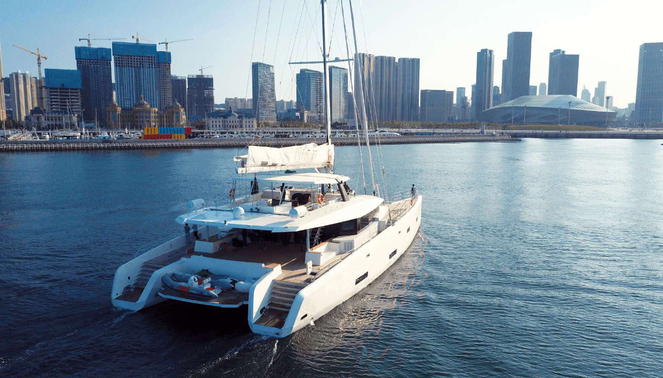 Luxury catamaran yacht RUIZI was built by the Chinese shipyard Jinlong and launched in 2019. The JINLONG 110 catamaran yacht offers spacious interiors and exterior deck areas and was designed by Berret-Racoupeau. She can accommodate up to 10 guests in 5 cabins, and sleep up to 4 crew.