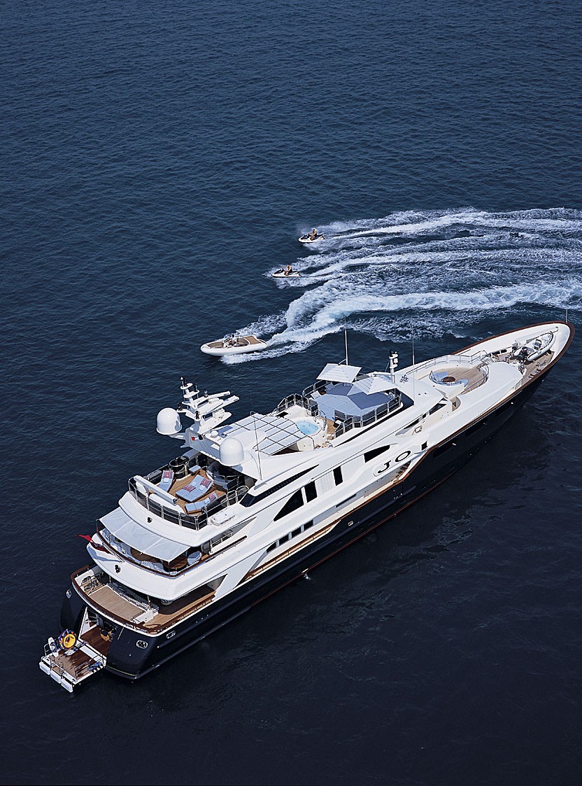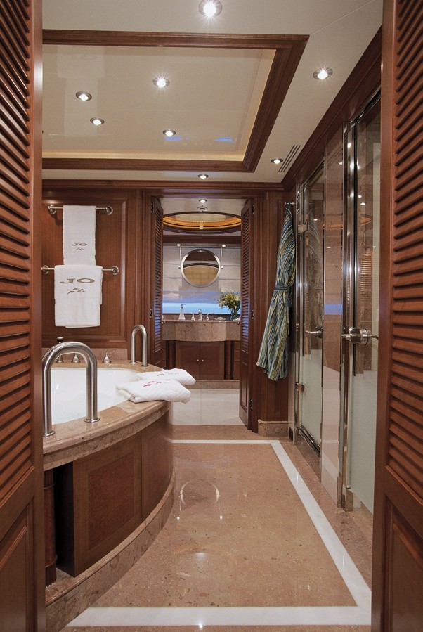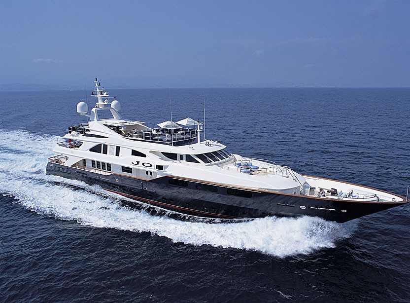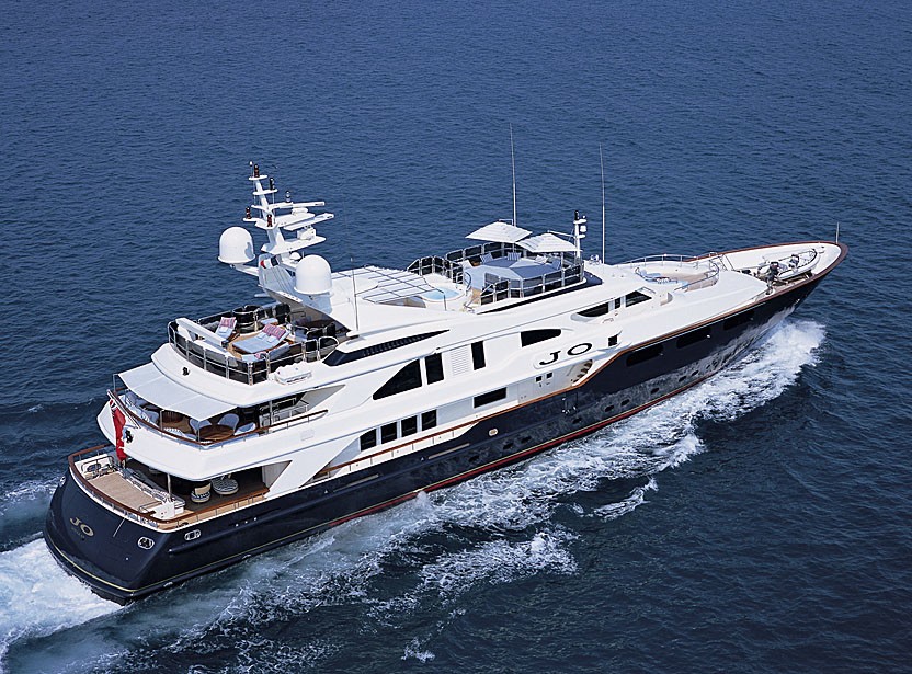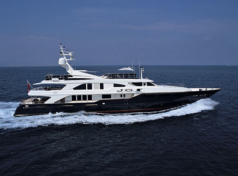 Fratelli Benetti was the naval architect firm involved in the professional superyacht design work for JO. Her interior design was completed by Zuretti Interior Design. Fratelli Benetti and Stefano Natucci is also associated with the yacht general design work for this yacht. Italy is the country that Benetti Yachts constructed their new build motor yacht in. After her formal launch in 2004 in Viareggio the boat was passed over to the happy owner after sea trials. Her core hull was built out of steel. The motor yacht main superstructure is fabricated largely from aluminium. With a width of 9 metres or 29.5 feet JO has spacious interior. She has a shallow draught of 2.5m (8.2ft). She had refit maintenance and modification carried out by 2007.