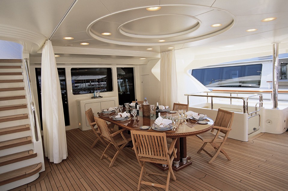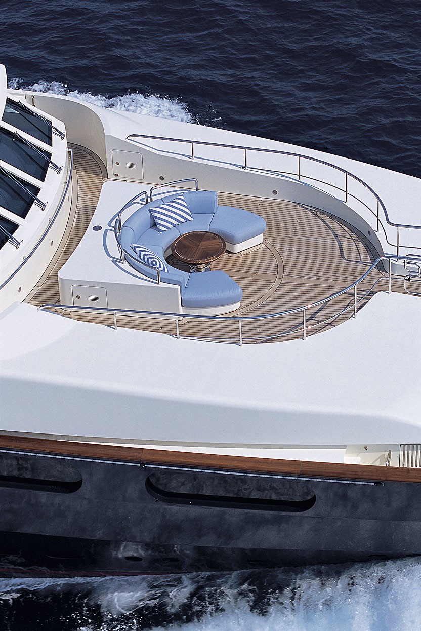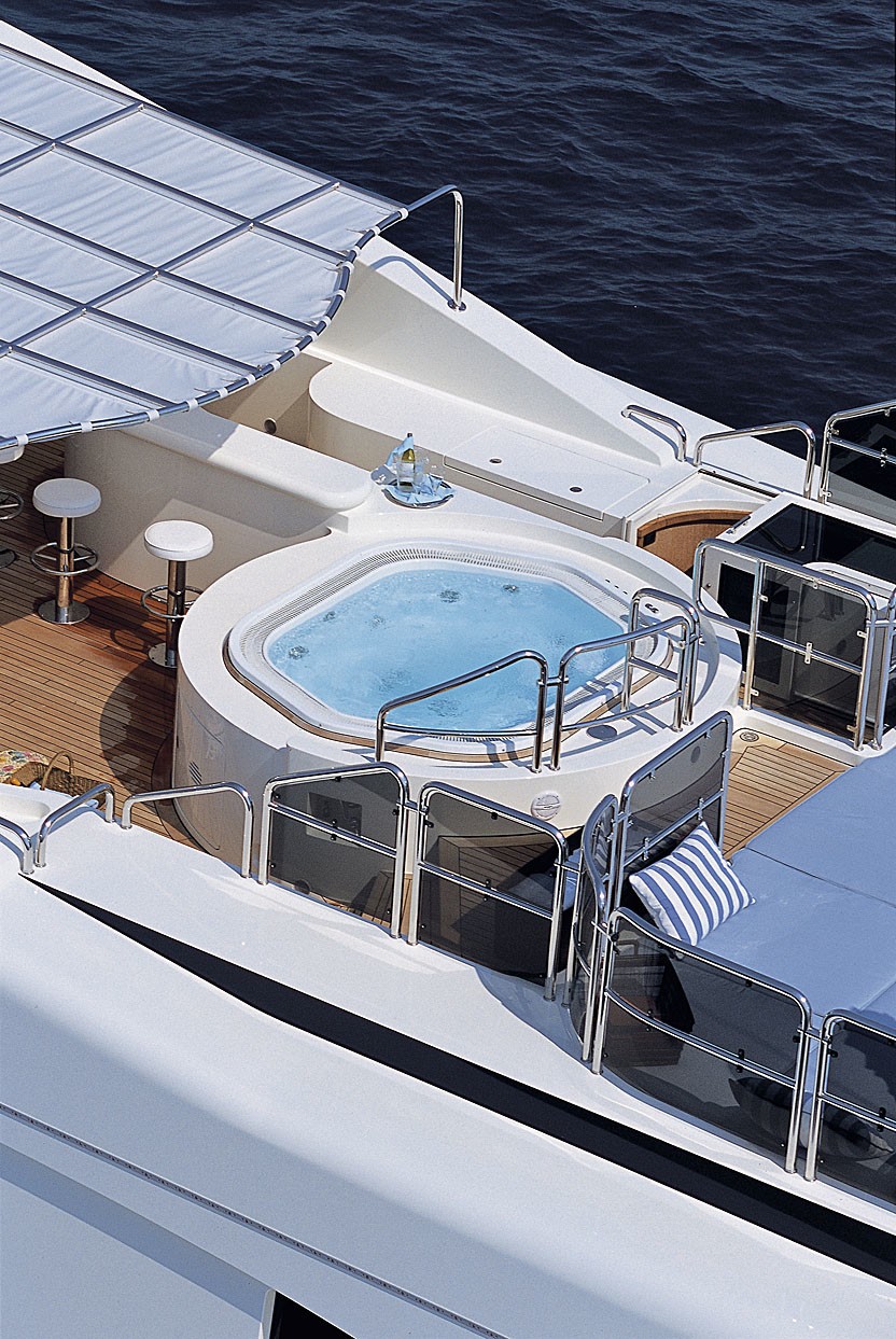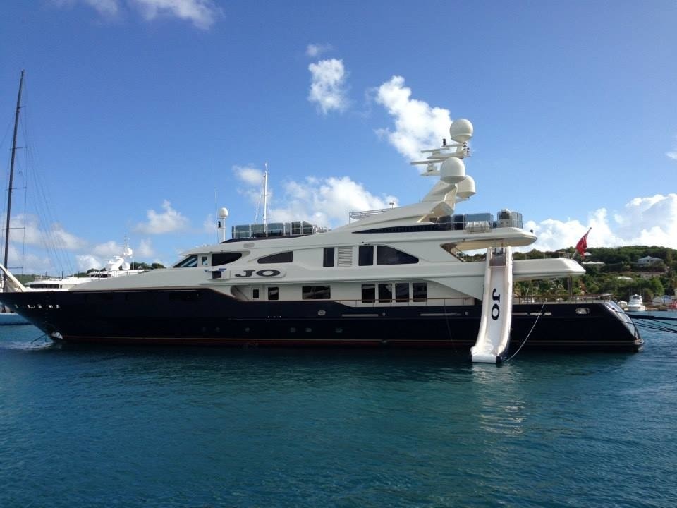 Fratelli Benetti was the naval architect firm involved in the professional superyacht design work for JO. Her interior design was completed by Zuretti Interior Design. Fratelli Benetti and Stefano Natucci is also associated with the yacht general design work for this yacht. Italy is the country that Benetti Yachts constructed their new build motor yacht in. After her formal launch in 2004 in Viareggio the boat was passed over to the happy owner after sea trials. Her core hull was built out of steel. The motor yacht main superstructure is fabricated largely from aluminium. With a width of 9 metres or 29.5 feet JO has spacious interior. She has a shallow draught of 2.5m (8.2ft). She had refit maintenance and modification carried out by 2007.