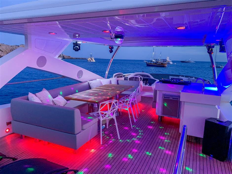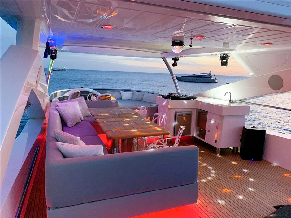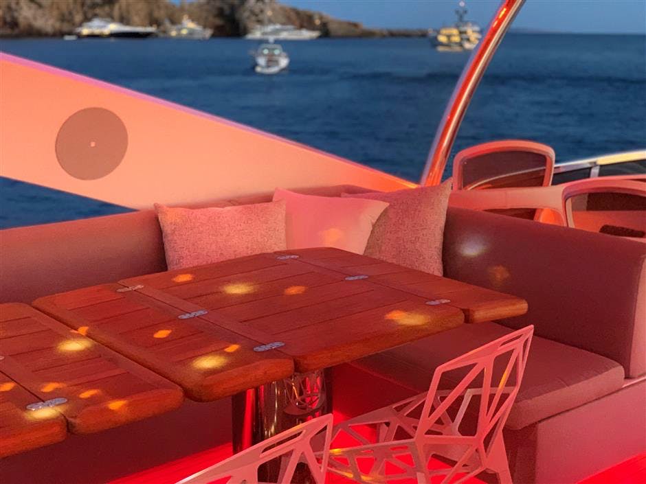 One of the best features on LI-JOR is her extraordinary range of water toys including seabobs, jetbikes and jetskis in addition to the usual selection. With twin CAT engines LI-JOR can reach cruising speeds of 24 knots making her the ideal Riviera boat. She is also fitted with zero speed stabilizers to maximize comfort at anchor.