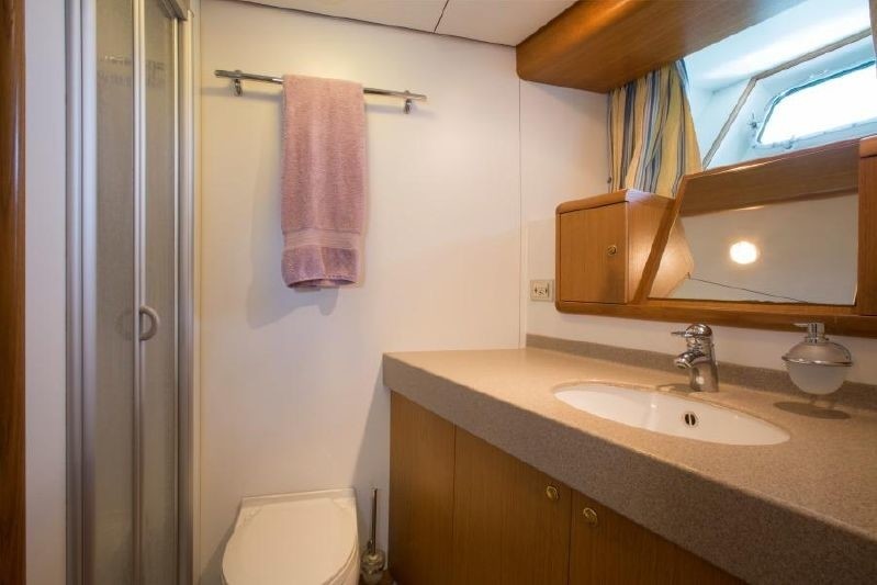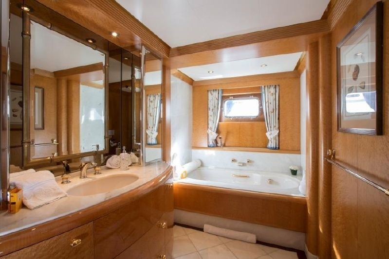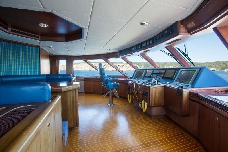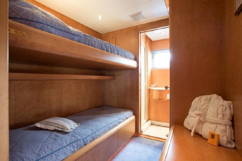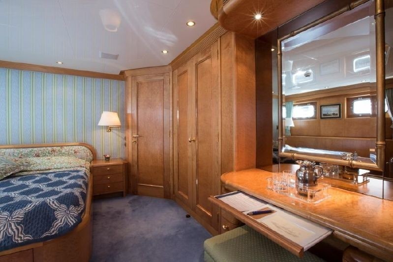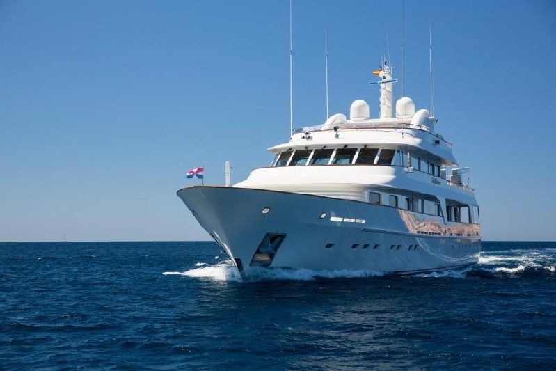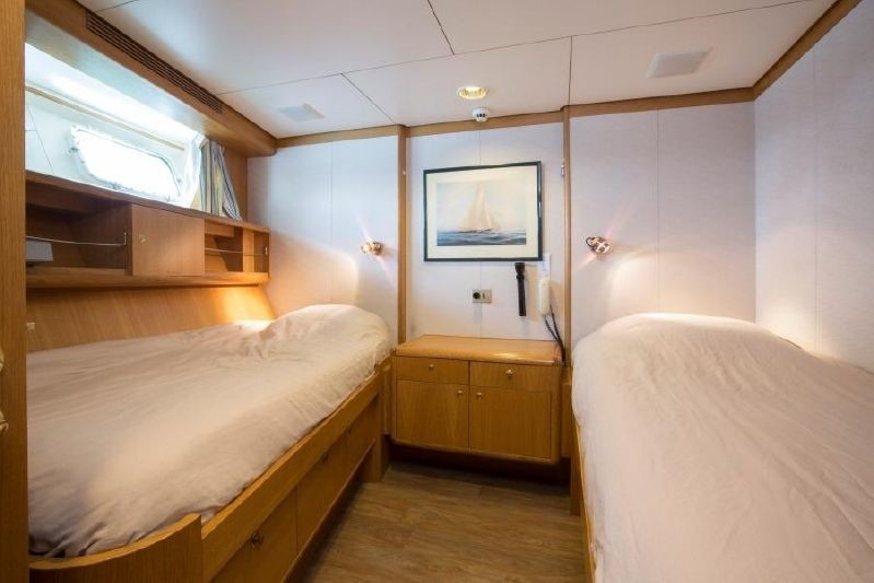 The motor yacht contains twin efficient CATERPILLAR main engine(s) and can touch a impressive top speed underway of around 14 knots. The main engine of the ship produces 918 horse power (or 675 kilowatts). Her total HP is 1836 HP and her total Kilowatts are 1351. Her propulsion units are twin screw propellers. As for the yacht’s stabalisers she was built with Koopnautic. Concerning bow thruster maneuverability she utilises Cramm. The boat’s high cruising speed is 13 knots which gives a range of 4000.