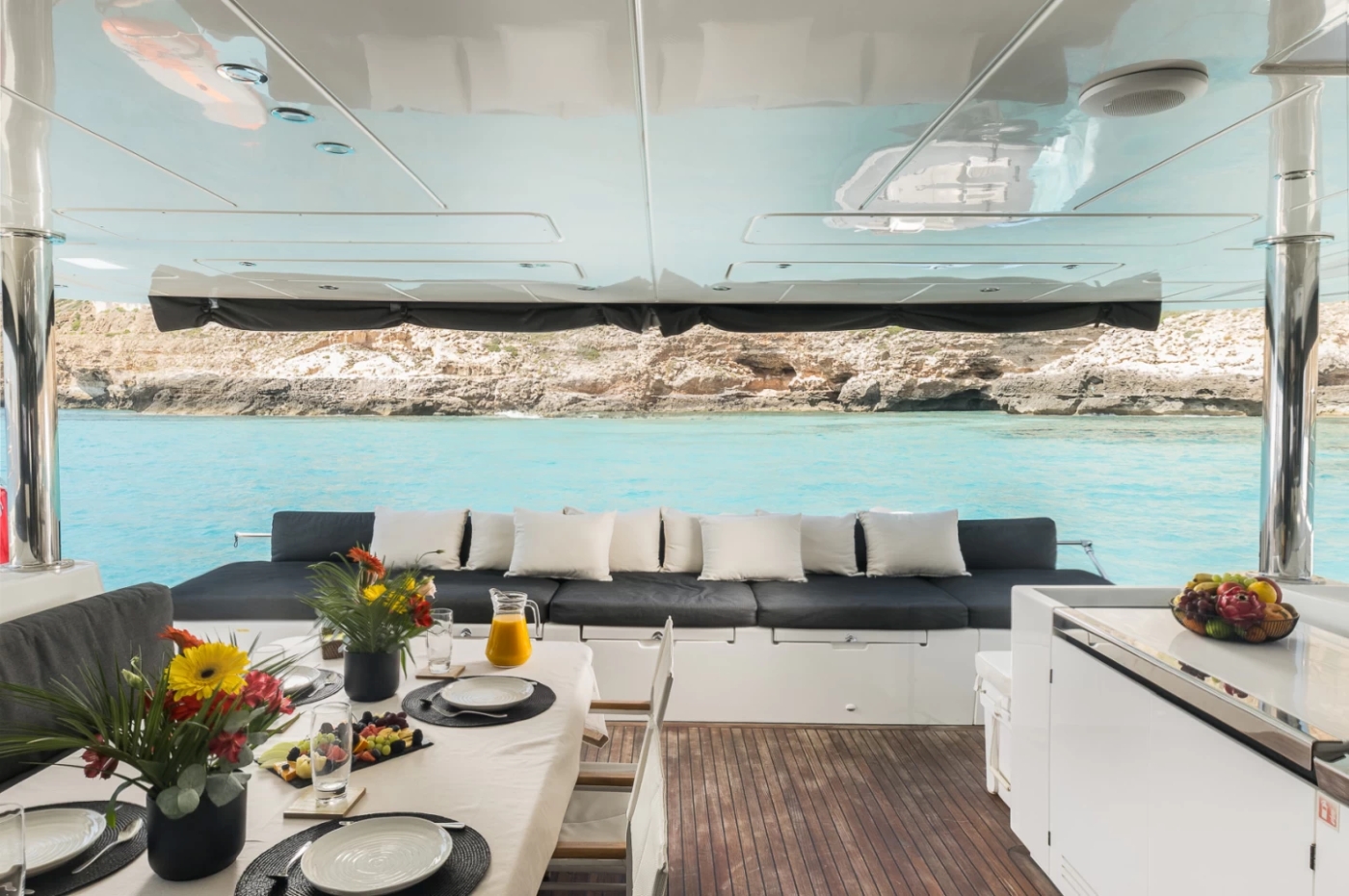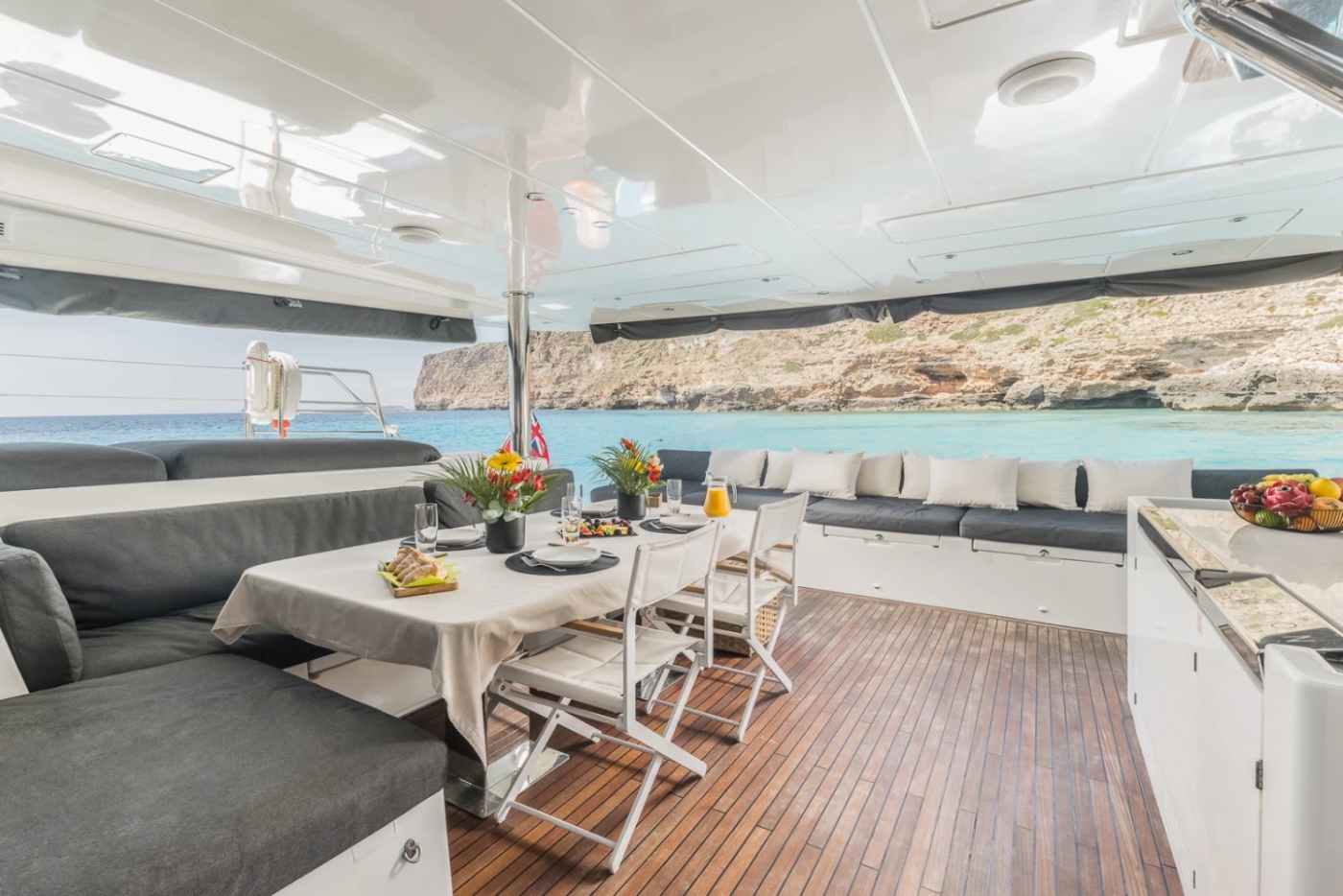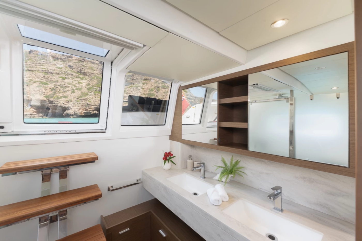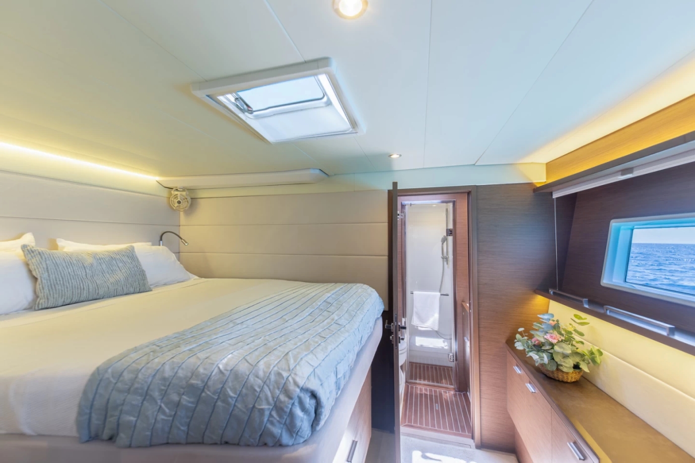 Designed by Van Peteghem and Lauriot Prevost (VPLP), in collaboration with Lagoon, she offers exceptional exterior living, over 2 levels. A shaded aft deck has alfresco dining, ample seating and service station. The foredeck is fitted with plush sunpads and boasts 2 safety nets, which are perfect for sunning. An upper flybridge has additional seating, sunpads and optional shade.