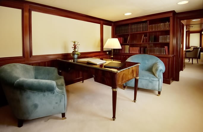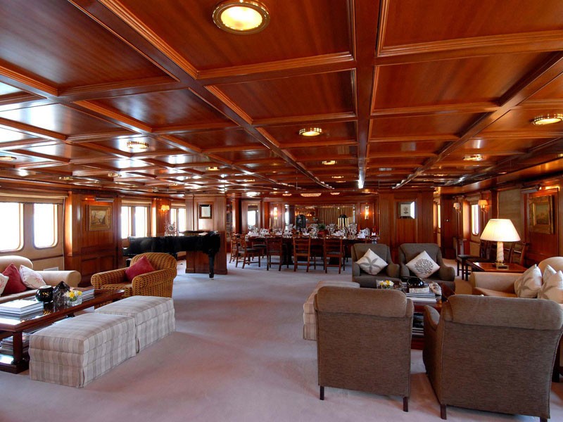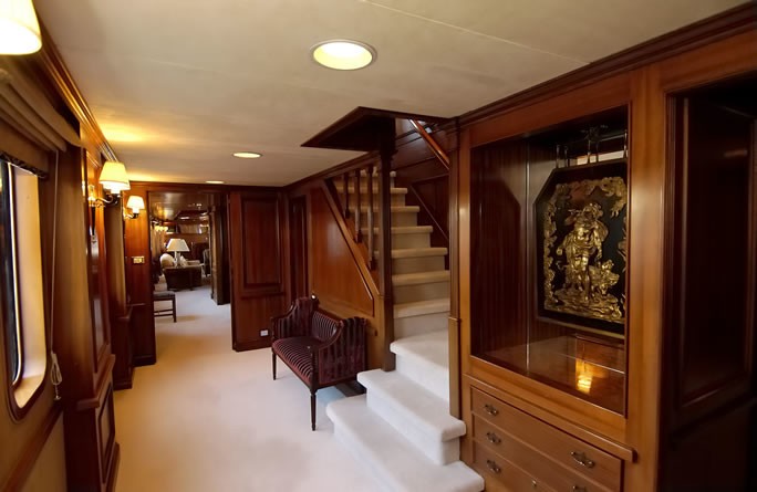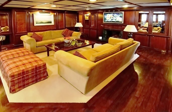 Fitted with twin SULZER-BUSCH diesel engines, LADY K II will reach a high speed of 14 knots. LADY K II is propelled by twin screw propellers. She also has an economical range of 7000 miles when underway at her cruise speed of 11 knots. Her total HP is 1680 HP and her total Kilowatts are 1236. As for the yacht’s stabalisers she was built with Vosper.