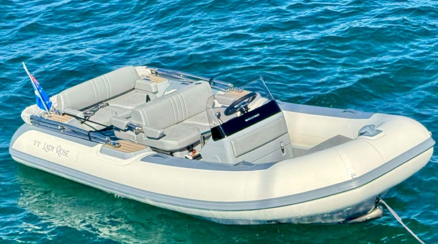 Tender & Toys ~Williams DieselJet 445 Tender – 15’, 110hp Yanmar Diesel, 35 knots, bimini shade, freshwater shower, towable sports capable ~2 Paddleboards ~2 Foldable Scooters ~2 Underwater Scooters ~Brownie’s Third Lung (for 4 guests) ~2 Windsurf boards ~Wakeboard ~Inflatable Banana Boat ~Snorkel gear, 4 fishing rods ~Beach games ~Floating bar lounge for in-water relaxation