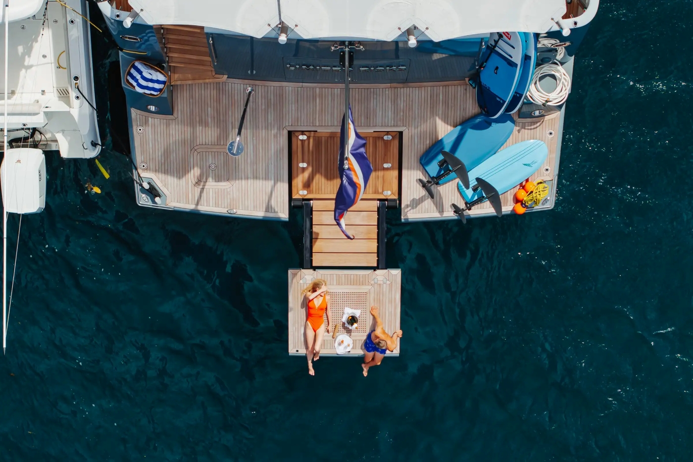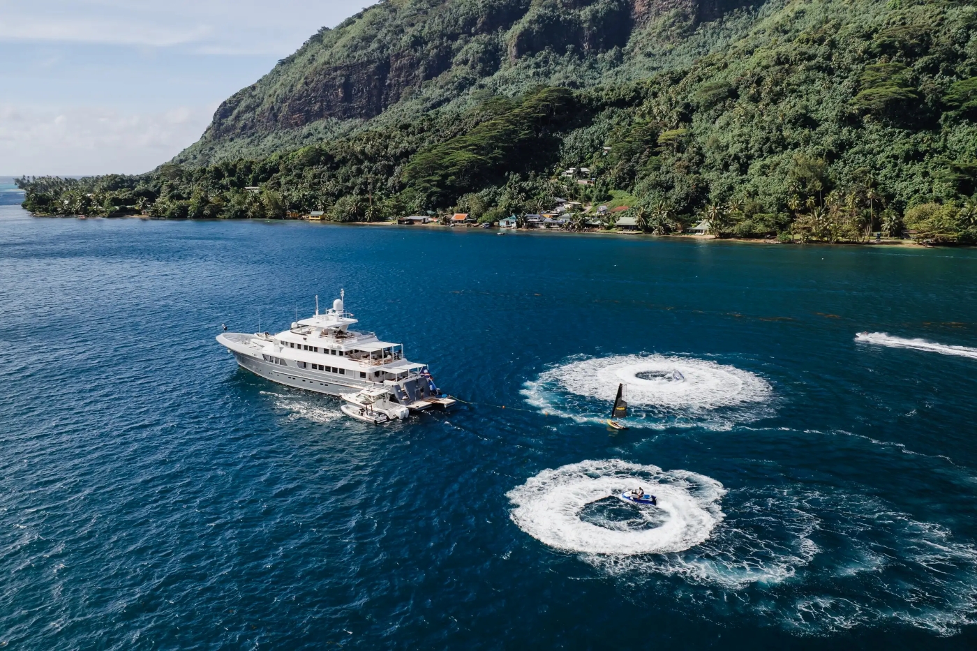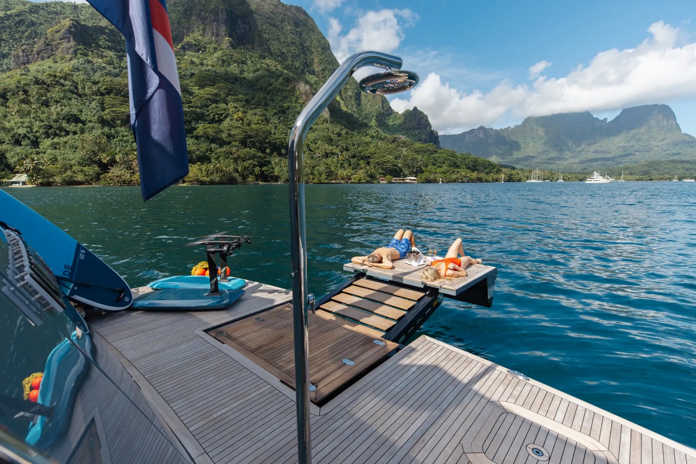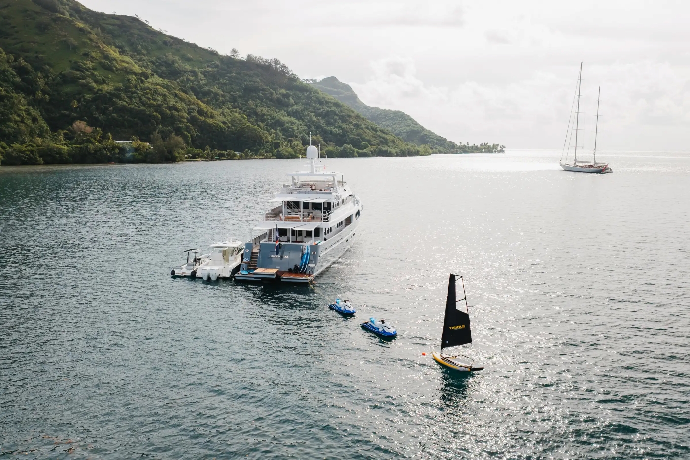 Tender & Toys Tenders: ~7.9m (26 ft) Sea Hunt with twin Yamaha 150hp 4 stroke outboards ~3.3m (10’10”) AB RIB Jet with a 100hp inboard ~Toys: ~2 x Yamaha VX Cruiser Waverunners ~2 x Lift Foils ~2 x Inflatable Kayaks ~Waterskis ~Wakeboard ~2 x 3.5m (11.6ft) Inflatable stand up paddle boards ~5 x Surfboards ~Aquabana inflatables (sofa - 3 pax, towable inner tube - 2 pax) ~Jelly Fish Pool 4m (13ft) x 4m (13ft) ~Fishing gear ~Snorkelling gear (14 x sets of masks, snorkels, 22x fins (S, M, L, XL, XXL), wetsuit tops - most sizes) ~Diving gear (1 x compressor, 8 x tanks, 2 x small, 2 x medium, 2 x large BCDs, 3/2 wetsuits) ~Rendez-vous only ~Beach party set-up: ~Beach BBQ ~3 x Gazebo 3m (10ft) x 3m (10ft) ~10 x Beach chairs ~3 x Tables ~Coolers, set of melamine plates and cutlery for beach BBQ