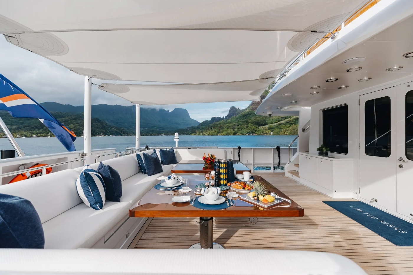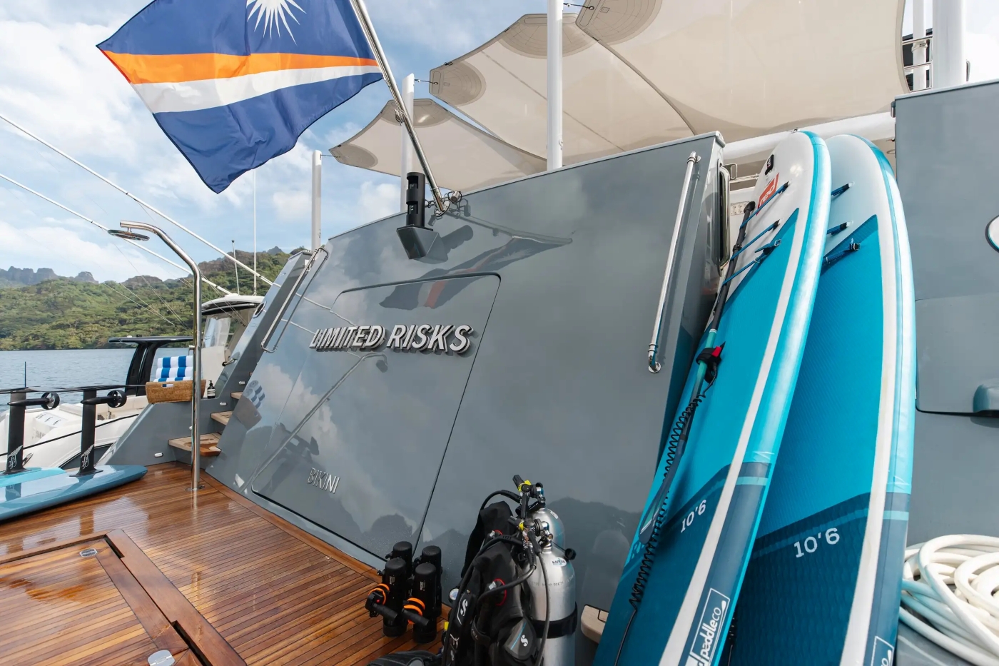 NOTABLE FEATURES OF LIMITED RISKS: ~ Recently refitted in 2025 ~ Deck Jacuzzi with bar and outdoor cinema ~ At-anchor and underway stabilisers ~ Large beach club and swim platform ~ Convertible twin/double guest cabins ~ Sky lounge with bar and panoramic views ~ Generous master suite with private study and large en suite ~ Gym equipment ~ WiFi and air conditioning throughout