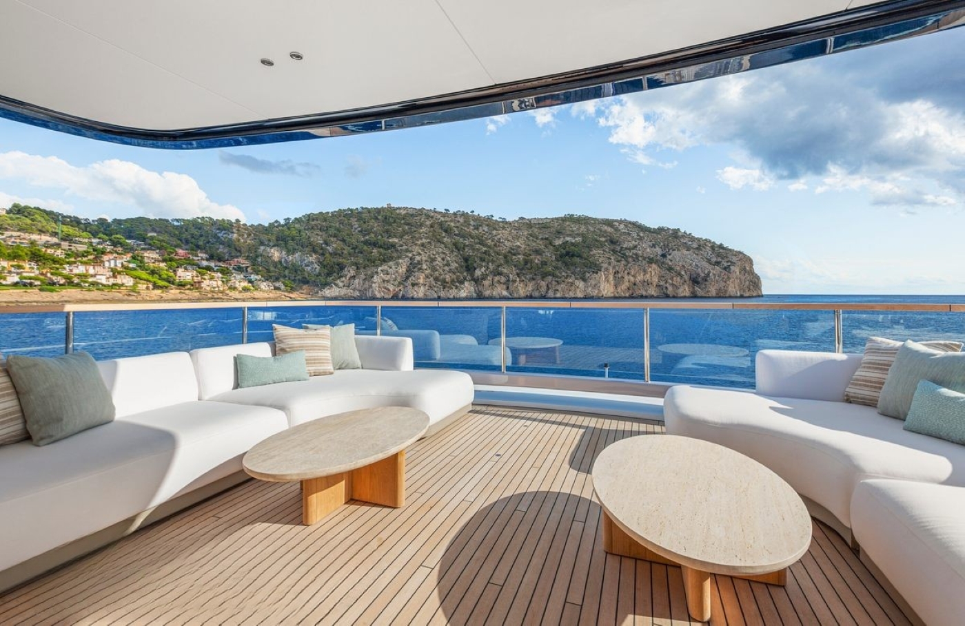 Delivered in 2025 by Italian shipyard Benetti, the 40.8-metre LIV LOVE is a striking tri-deck motor yacht in the celebrated Oasis 40M series. With interiors by acclaimed designer Kelly Behun and accommodation for up to 11 guests, she brings together bold exterior styling, contemporary elegance, and family-friendly amenities. Her full-beam main deck owner’s suite, sweeping beach club, and open-air cinema make her as suited to entertaining as to quiet moments at sea. Ten professional crew ensure an effortless and tailored onboard experience.