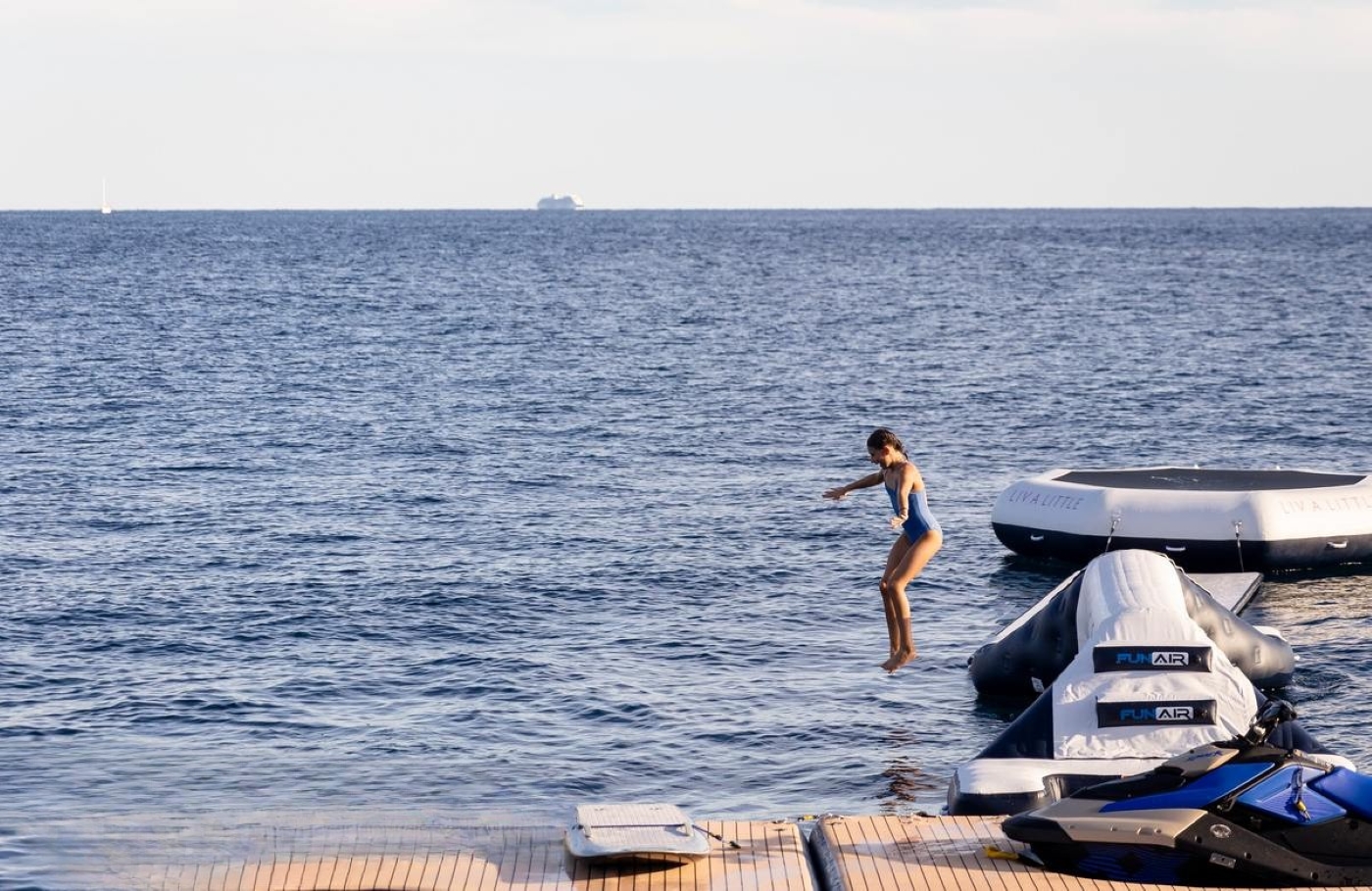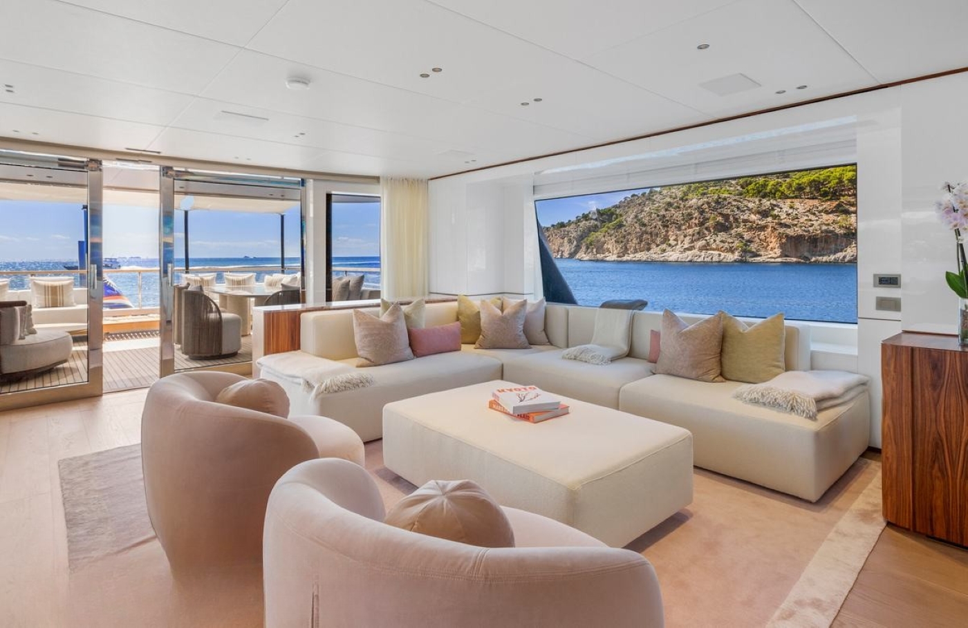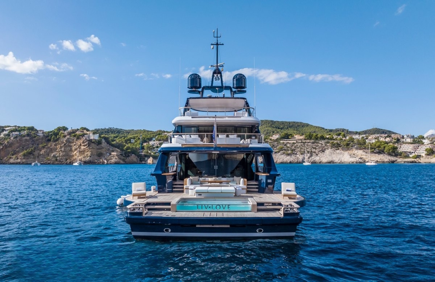 NOTABLE FEATURES OF LIV LOVE: ~ Brand-new 2025 Benetti Oasis 40M yacht ~ Full-beam main deck master suite with lounge, desk and dual ensuite ~ Interiors by Kelly Behun – light-filled, textured and serene ~ Infinity-edge main deck pool with glass wall overlooking the sea ~ Open-air cinema on the aft deck ~ Dedicated gym on the main deck ~ Generous sun deck with BBQ, sit-up bar, alfresco dining and sunpads ~ Two tenders and extensive toy collection, including slide and sea-trampoline ~ Two VIP cabins plus convertible layout with Pullman for family flexibility ~ Starlink WiFi, stabilisers underway and at anchor, air-conditioning throughout