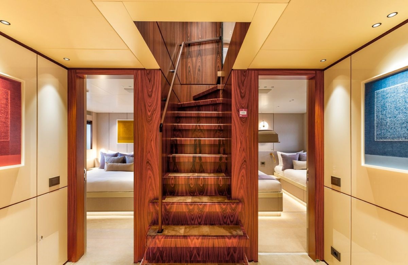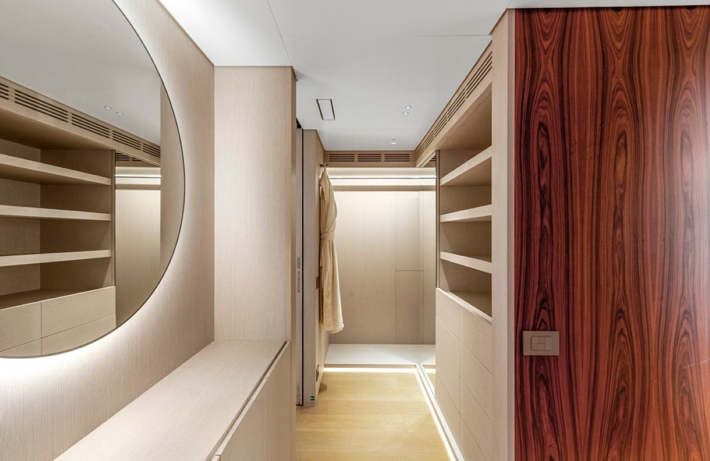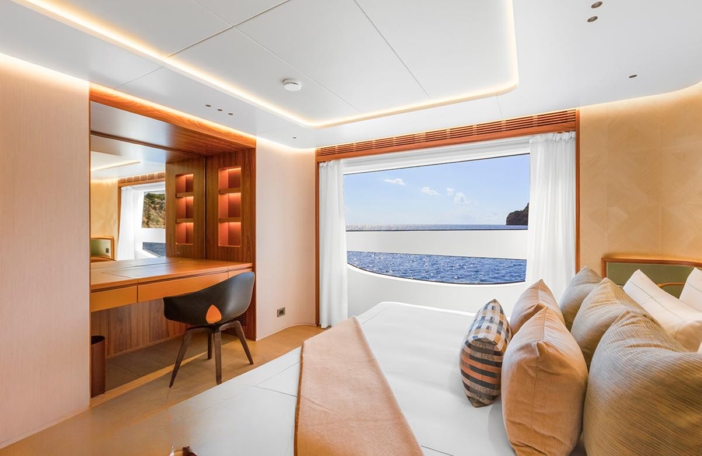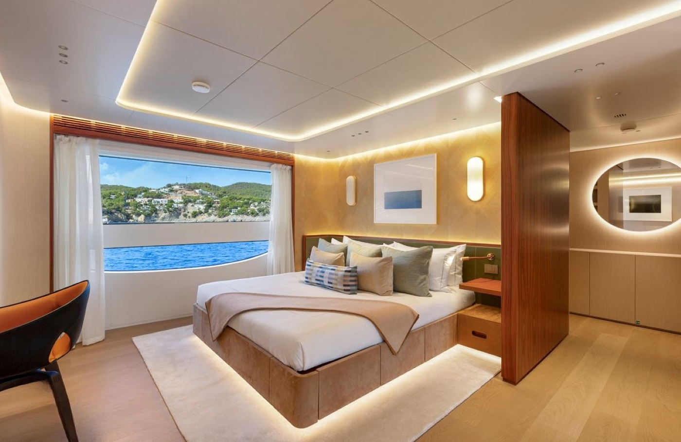 LIV LOVE accommodates up to 11 guests in five ensuite cabins: ~ Master Suite (main deck): Full-beam with private lounge, desk, dressing rooms, his and hers bathrooms with central rainfall shower ~ 2 x VIP Cabins (lower deck): Queen-sized beds, ensuites, large windows ~ 1 x Double Cabin (lower deck): Double bed and ensuite ~ 1 x Twin Cabin (lower deck): Convertible to double, with Pullman berth and ensuite All cabins are finished with precision and comfort, offering ample wardrobe space and bespoke detailing. The layout is ideal for families or mixed group configurations.