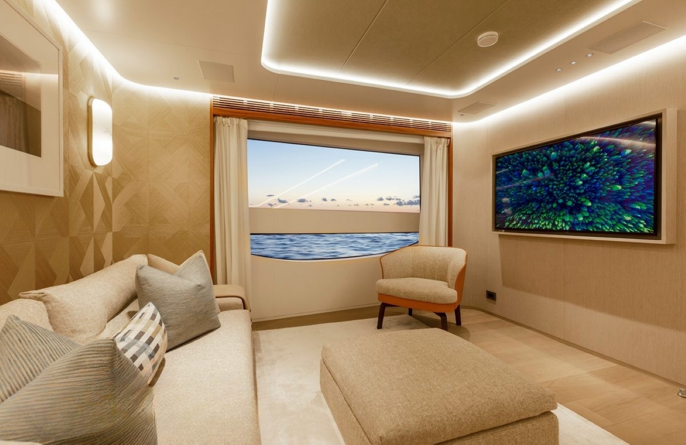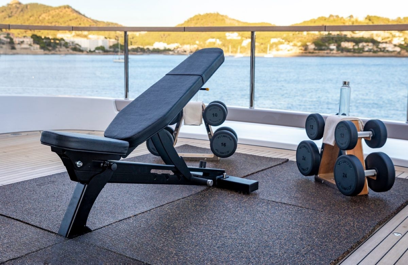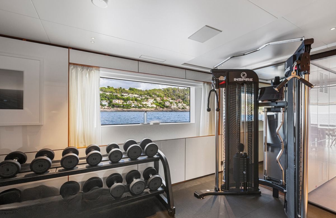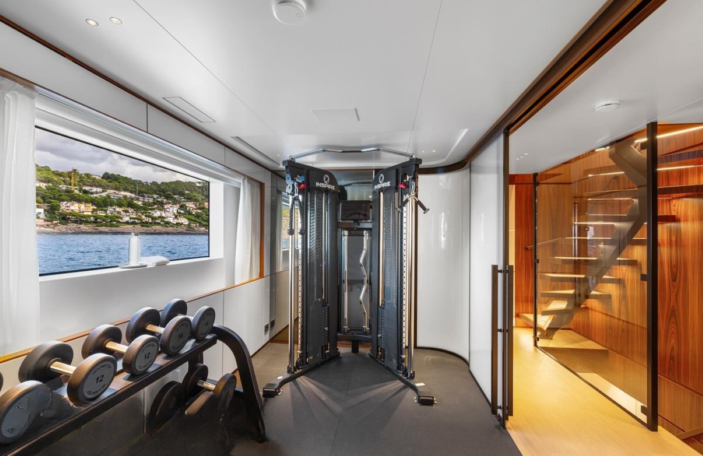 A standout feature is the main deck gym – a rare addition at this size – ensuring wellness is never far from reach. Floor-to-ceiling glass and subtle lighting further enhance the light and mood throughout.