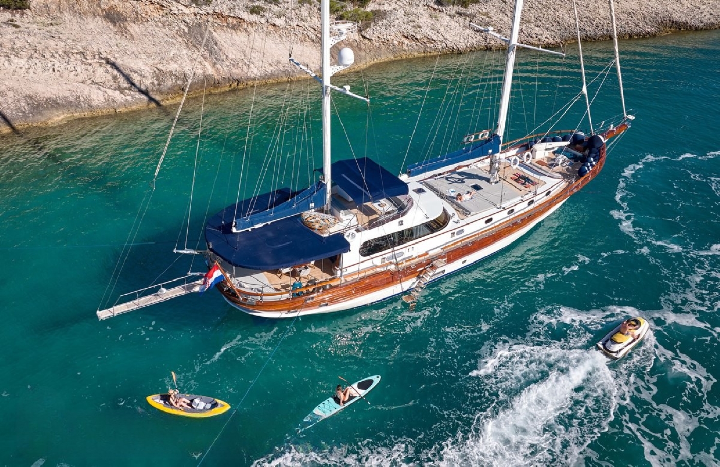 Sailing gulet LOTUS was delivered in 2006, refitted in 2023 and measures 30m (98'5'), she accommodates 8 charter guests over 4 cabins.