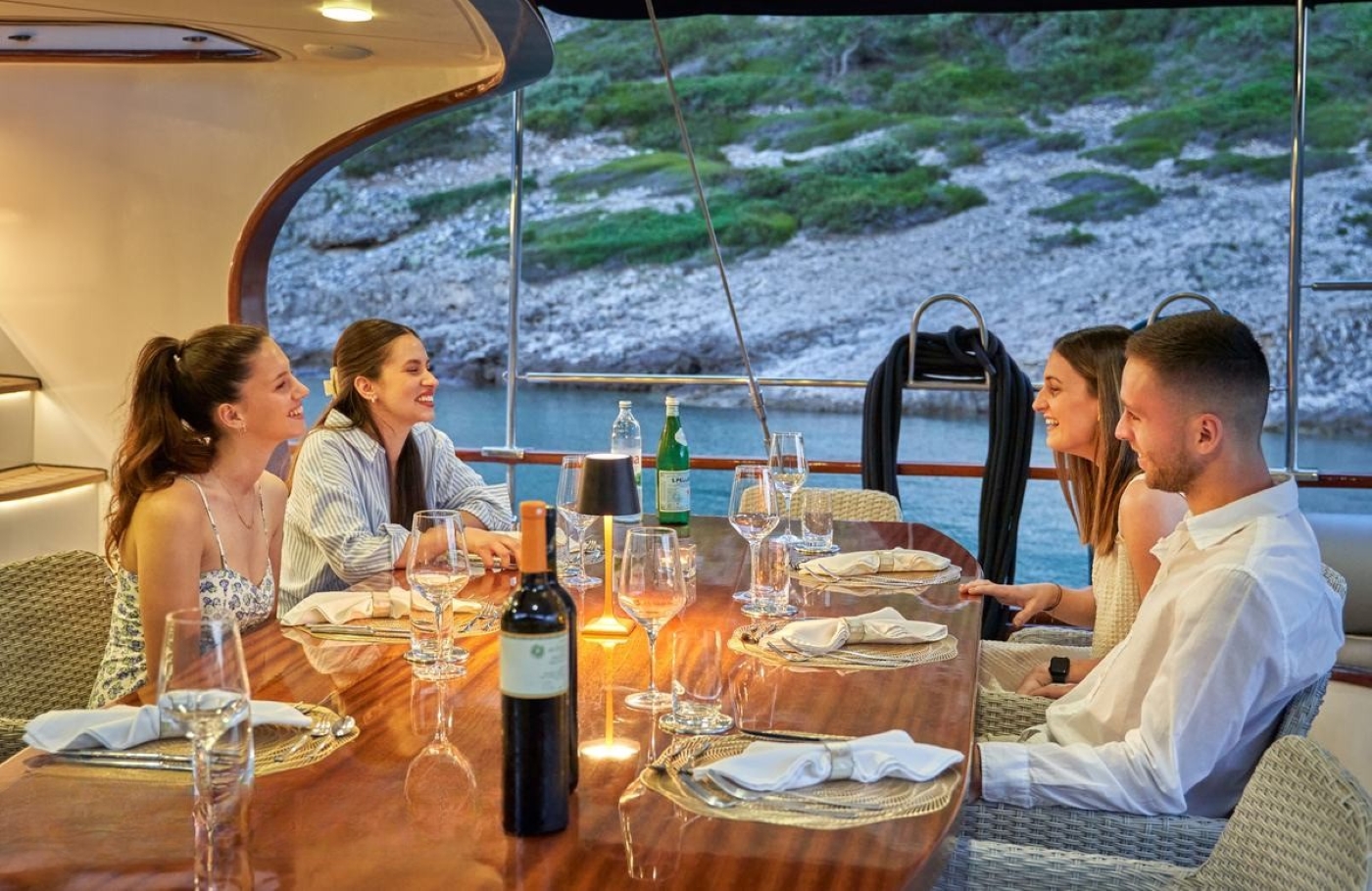 Two MAN 440hp engines power the yacht and can reach top speeds of 10 knots.