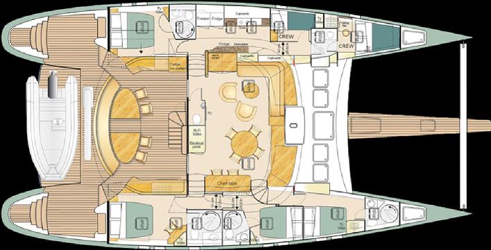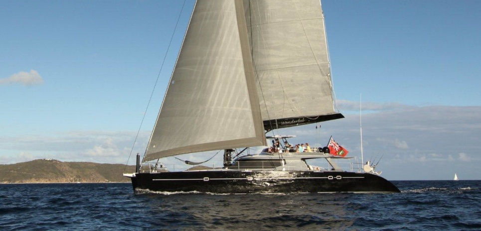 WONDERFUL easily rivals a 90 - 100ft monohull sailing for interior and exterior space and comfort and offers a very stable and comfortable ride together with an enormous amount of deck area due to her aft balcony, 400 sq. ft. cockpit and flybridge solarium. Her 60ft. long and 6ft. wide teak foredecks, large trampolines and a 2 person spa pool/spa stand her aside from all other cats in her class.