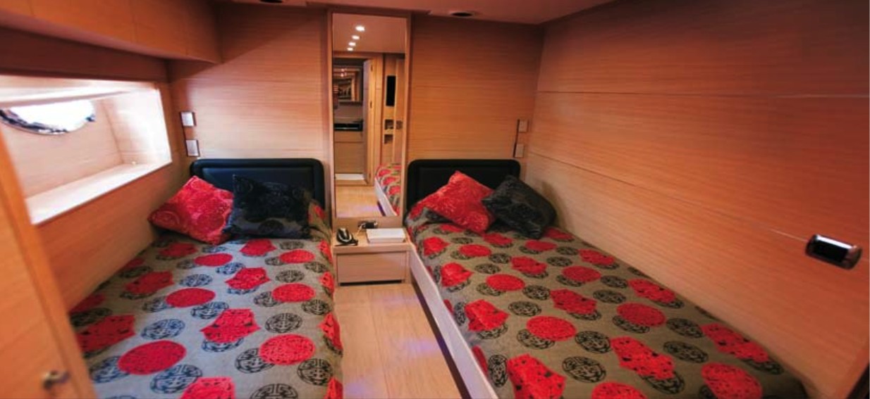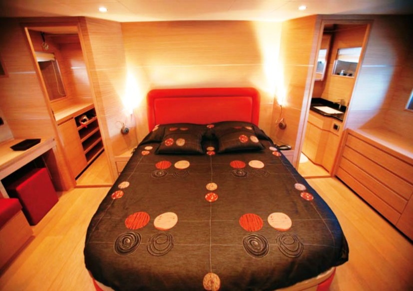 SOLANGE has a very interesting external design with ‘slit’ windows along the superstructure and skylight windows in the ceiling. She can accommodate up to 8 yacht guests in 4 cabins – 2 with double beds and 2 with two single beds in each. Master and VIP staterooms are designed to offer an almost identical comfort.