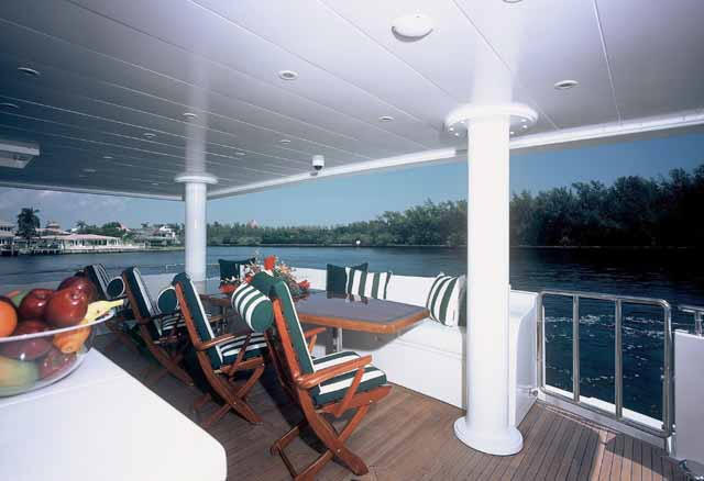 Pacific Northwest & Mexico luxury motor yacht 'La Marchesa' amenities and extras include: Recreation: 15ft Nautica 80 HP Outboard, Kneeboard, 2x2-man Kayaks, Fishing Equipment, Waterskis (adult), SAT TV, Local TV, RECREATION: DVD Library, VCR Library, CD Library, Stereo System, DVD Player, VCR Player, CD Player, 6 bicycles, Electronic piano, DECK & SYSTEMS: Cell Phone, Fax, Internet / Email, Spa Pool (master cabin), Computer, SATCOM, BBQ.