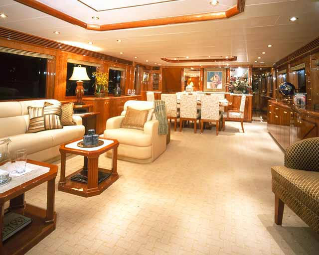 Pacific Northwest & Mexico luxury motor yacht 'La Marchesa' provides spacious and stylish accommodation for seven guests in four cabins. The master cabin has a king size bed, en suite bathroom with a bath/tub, shower and head. The VIP cabin has a queen size bed, en suite bathroom with a shower and head. One guest cabin with twin beds, en suite bathroom with a shower and head. The final guest cabin has a single bed, en suite bathroom with a shower and head. The yacht is fully air conditioned through out. The crew aboard has a separate companionway, heads and shower.