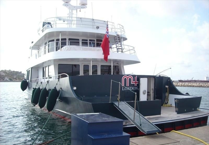 The yacht's general design work came from Stephen R Seaton and Kevin M Kerwin. The professional naval architecture plans are the creation of Stephen R Seaton. Motor Yacht M4 received her elegant interior designing from the interior design company of Selldorf. Built by Rmk Marine Gemi Yapim nayi Ve this vessel was fabricated in Turkey. She was successfully launched in Istanbul in 2002 before being handed over to the owner. Her core hull was built out of steel. The motor yacht main superstructure is fabricated extensively from aluminiumandgrp. With a width of 8.53 metres or 28 ft M4 has fairly large interior. She has a shallow draught of 2.87m (9.4ft).