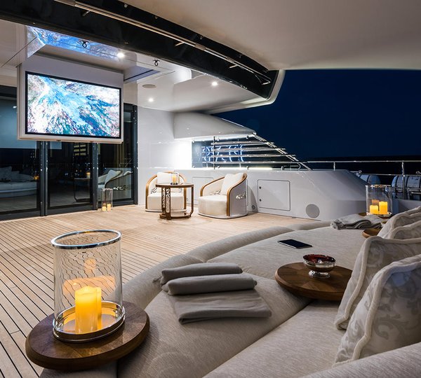 This luxury motor yacht offers beautiful and comfortable accommodation to 12 guests in total. They are looked after by an impeccable and numerous crew of 23 professionals.