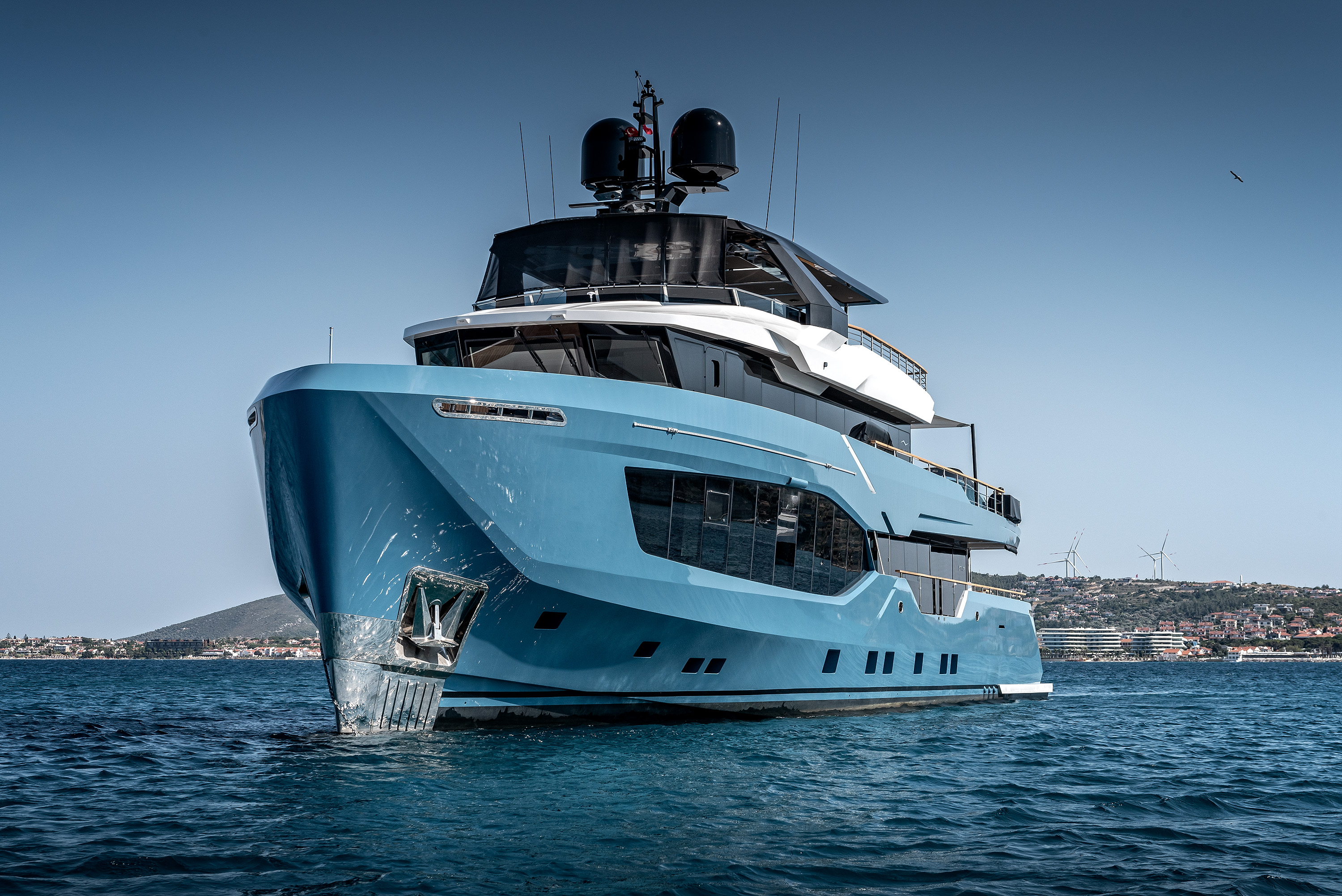 37m LUXURY EXPLORER YACHT is a sturdy 37.13 m (121' 10") Numarine explorer yacht built in 2022 and refitted in 2024 with eye-catching blue hull and extremely elegant interior. She can accommodate up to twelve guests in six ensuite staterooms with additional cabins for the seven professional crew members.