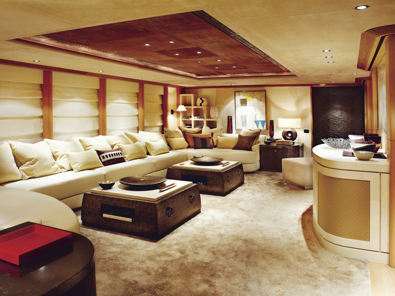 On board the stunning interiors are of course complemented by equally alluring deck spaces. Forward on the top deck, a vast Spa Pool dip pool with jet stream is surrounded by cushions, chairs and loungers and will ensure that sun worshippers, attended to by a highly professional crew, need never leave their position before sunset. On the aft part of the top deck a round table will seat up to 18 guests in comfort for al-fresco dining and further innovative design allows for a full stage and band facilities to be set up on the aft part of the upper deck should the occasion call for it. Further opportunities for more intimate dining al fresco and relaxing are provided by alternative spaces on the outdoor decks.