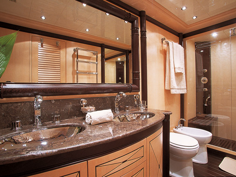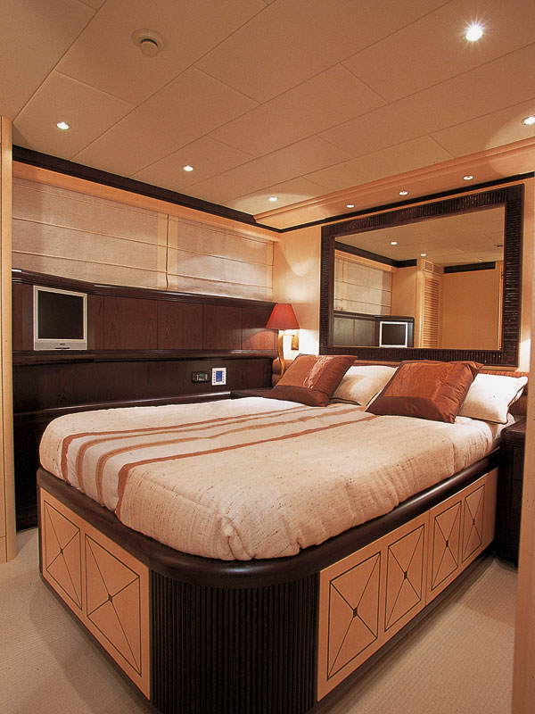 Motor yacht Illusion provides the following charter Guest Accommodation: She has one King-size master cabin, two doubles and one twin cabin, all with ensuite facilities. The starboard double is convertible to an occasional open plan saloon/TV room by way of double sliding doors.