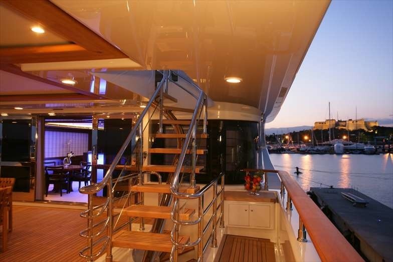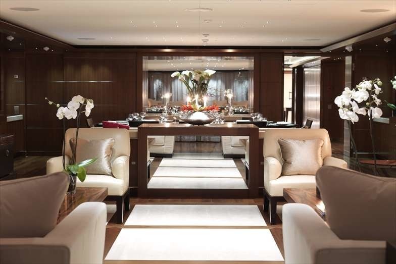 Crn was the naval architect firm involved in the formal superyacht plans for MARAYA. Her interior design was realised by Studio Zuccon International Project / Claude Missir Agency. Crn and Studio Zuccon International Project is also associated with the yacht wider design collaboration for this yacht. Italy is the country that Crn Yachts (Ferretti Group) built their new build motor yacht in. After her formal launch in 2007 in Ancona she was passed over to the owner having completed sea trials. Her main hull was crafted from steel. The motor yacht main superstructure is fabricated extensively with aluminium. With a width of 10.2 metres / 33.6 ft MARAYA has fairly large interior. She has a reasonably deep draught of 3.4m (11.1ft).
