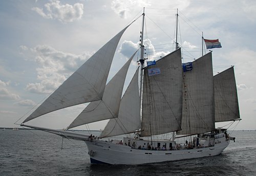 Sailing yacht MINERVA, the steel 3 masted schooner was built in 1935 by C.Lühring, Hammelwarden, GER as "Uwe Ursula" and she had 4 sisterships. The yacht was lengthened to 34,80m in 1936. In 1987 she was bought by Dutch interests and converted into a 3-masted schooner again and renamed the "Minerva” she is in use as restaurant ship and for meetings, parties and short trips in the North Sea