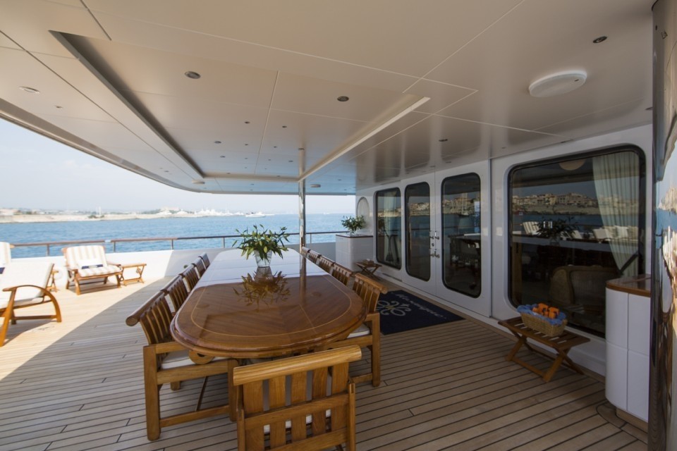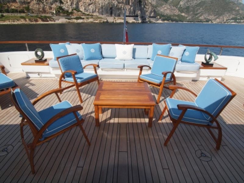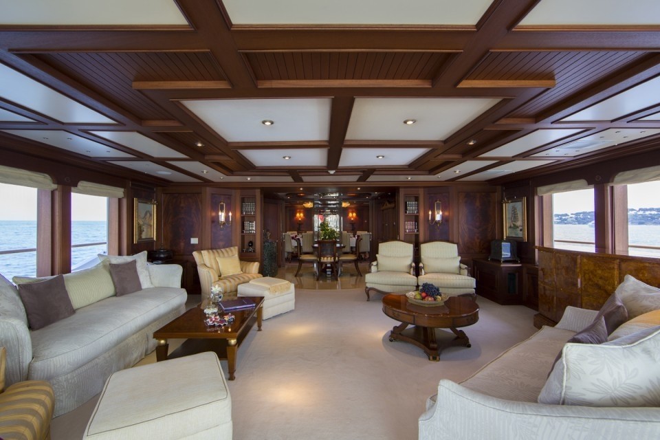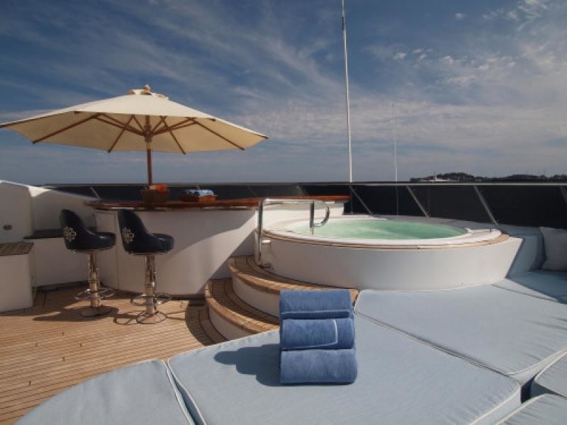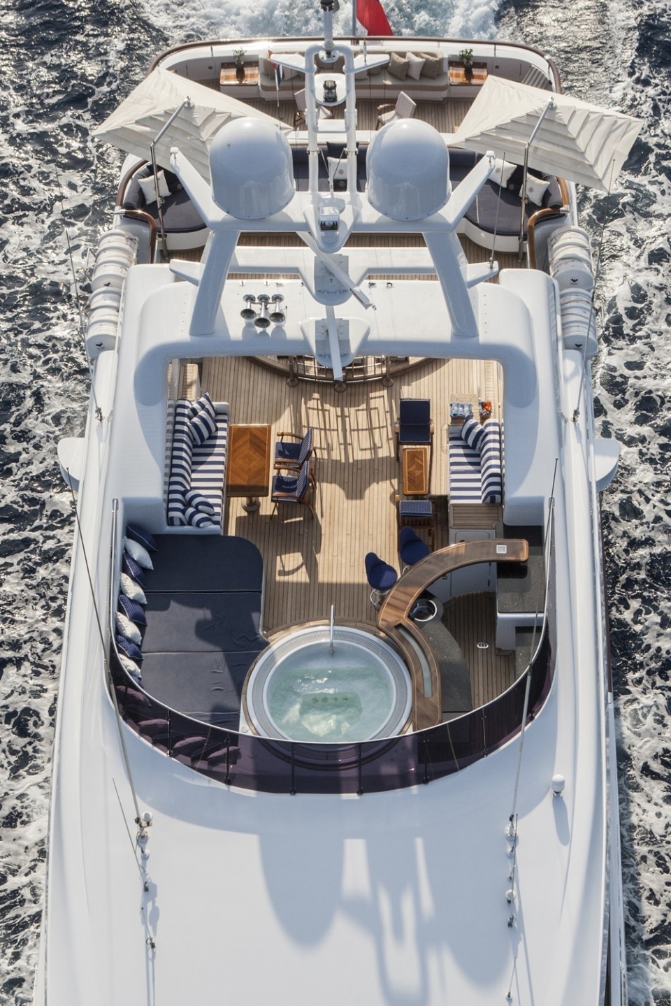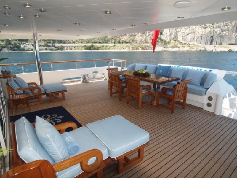 Dubois Naval Architects was the naval architect firm involved in the technical vessel composition for MOSAIQUE. Also the company Dubois Naval Architects expertly collaborated on this venture. Interior designer Donald Starkey Designs / Kristina Ferrand was responsible for the internal interior styling. Turkey is the country that Proteksan Turquoise Yachts built their new build motor yacht in. After her official launch in 2001 in Istanbul she was thereafter delivered on to the happy owner having completed final finishing. A fairly large area is brought about with a total beam (width) of 9.3 m / 30.5 feet. With a 2.74m (9ft) draught (maximum depth) she is reasonably shallow. The material steel was used in the building of the hull of the motor yacht. Her superstructure above deck is built from aluminium.
