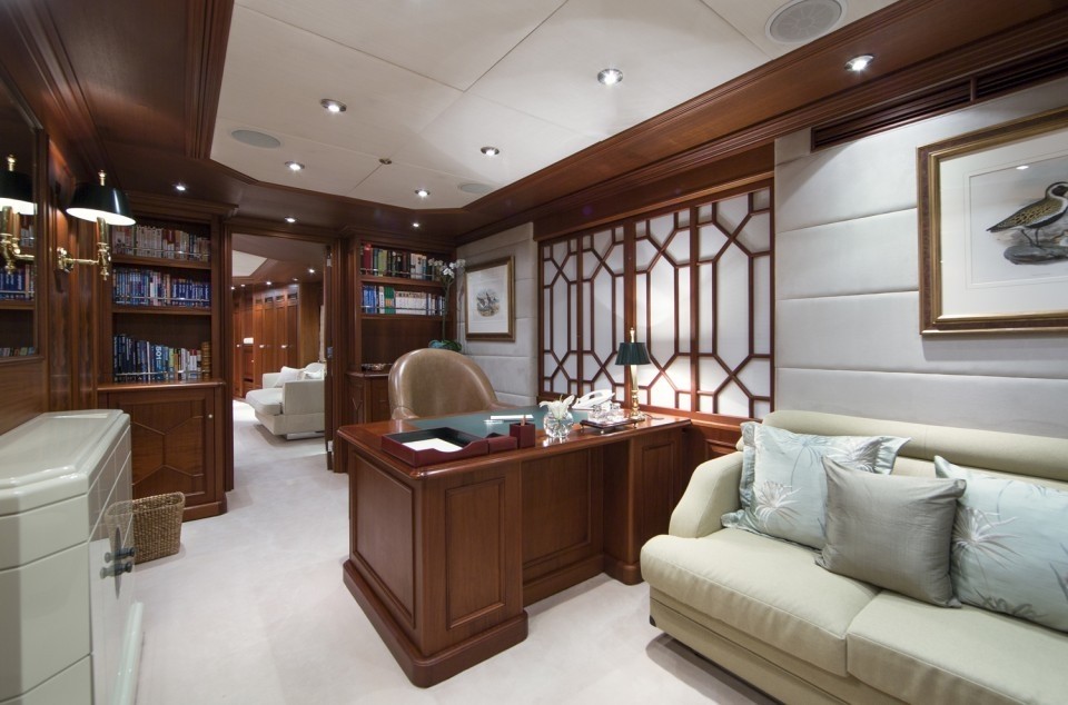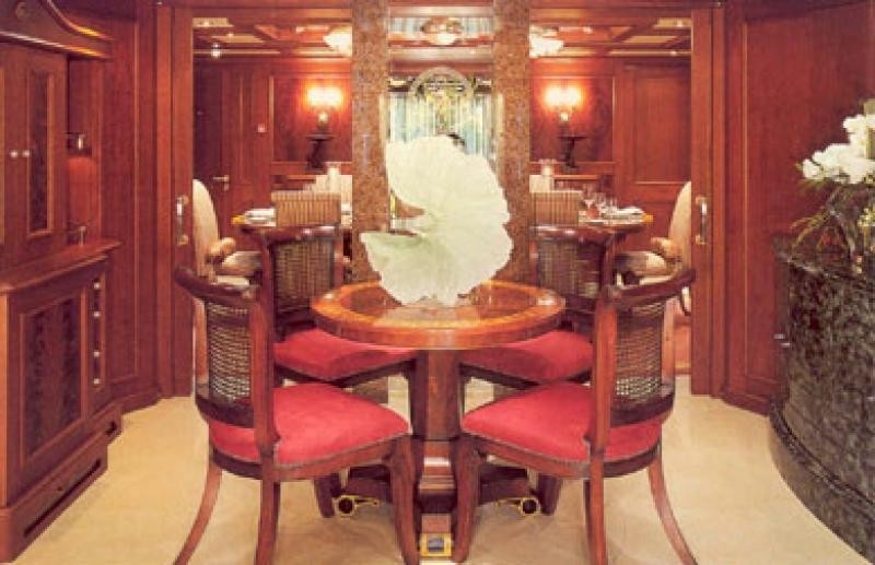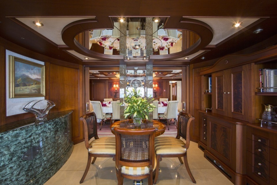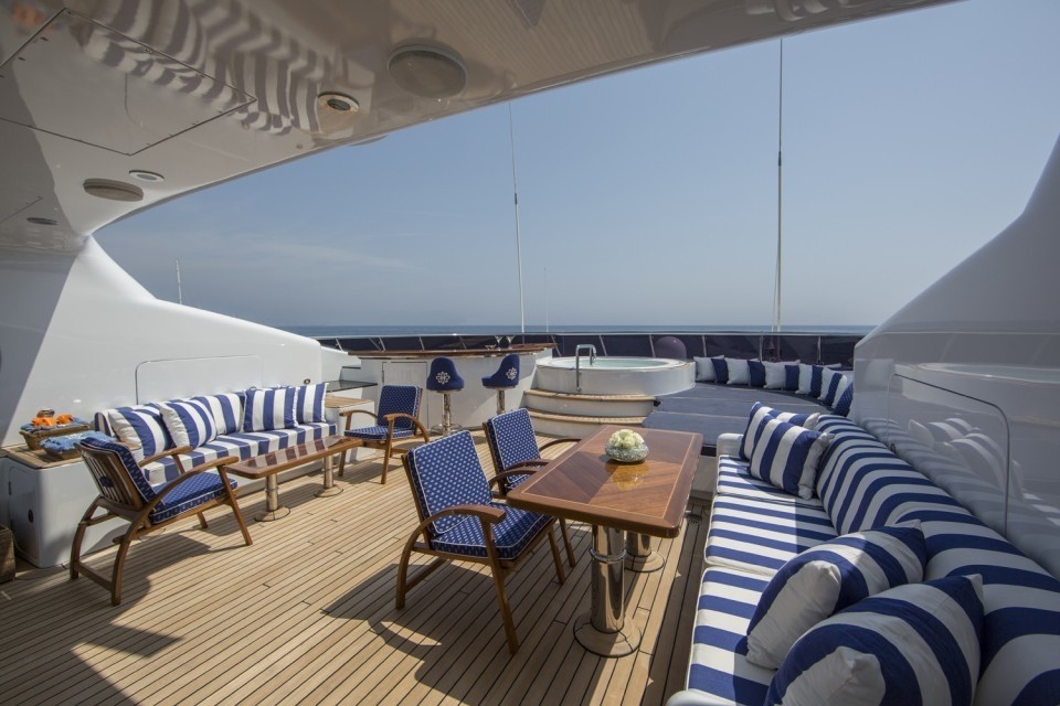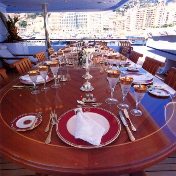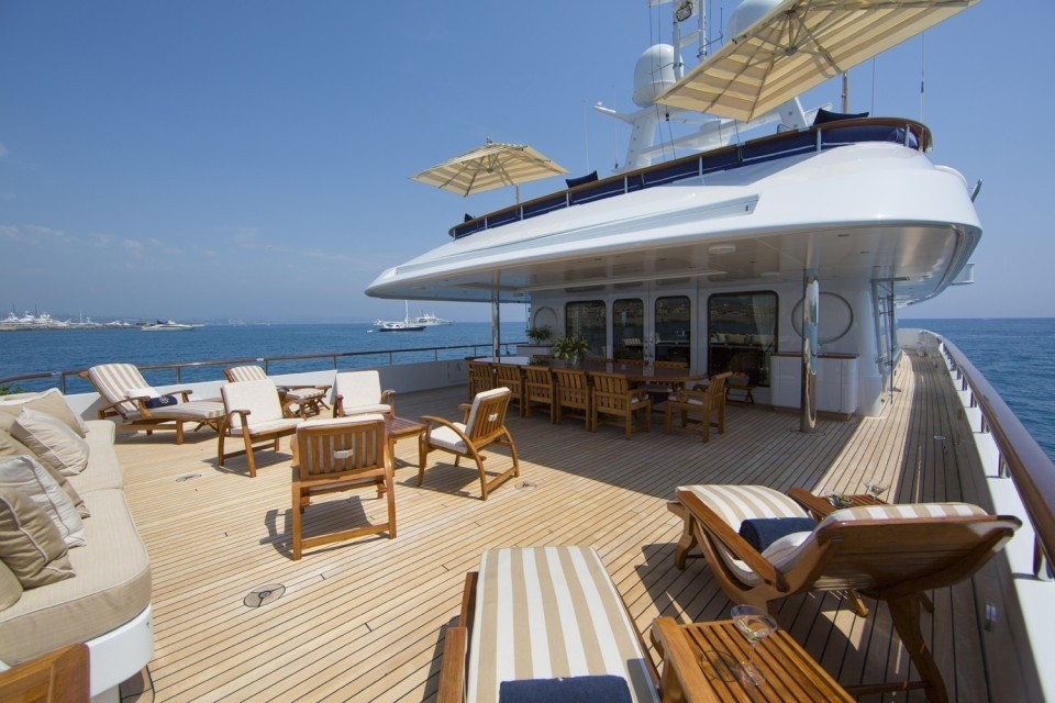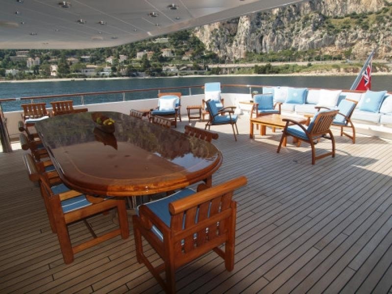Dubois Naval Architects was the naval architect firm involved in the technical vessel composition for MOSAIQUE. Also the company Dubois Naval Architects expertly collaborated on this venture. Interior designer Donald Starkey Designs / Kristina Ferrand was responsible for the internal interior styling. Turkey is the country that Proteksan Turquoise Yachts built their new build motor yacht in. After her official launch in 2001 in Istanbul she was thereafter delivered on to the happy owner having completed final finishing. A fairly large area is brought about with a total beam (width) of 9.3 m / 30.5 feet. With a 2.74m (9ft) draught (maximum depth) she is reasonably shallow. The material steel was used in the building of the hull of the motor yacht. Her superstructure above deck is built from aluminium.