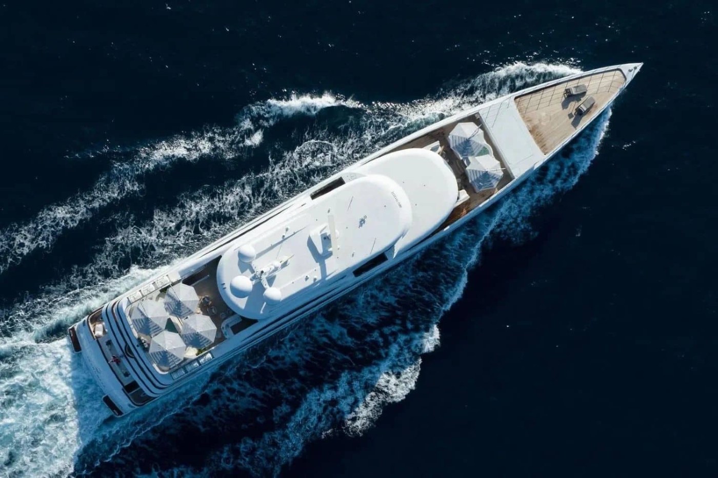 Yacht SOUNDWAVE boasts a distinctive exterior featuring her unique axe bow which has a vertical blade for enhanced cruising performance. The custom Art Deco-inspired interiors by the Owner’s personal design team offer enhanced luxurious on-the-water living, including a vast private Owner’s deck with the master suite overlooking a private sundeck.
