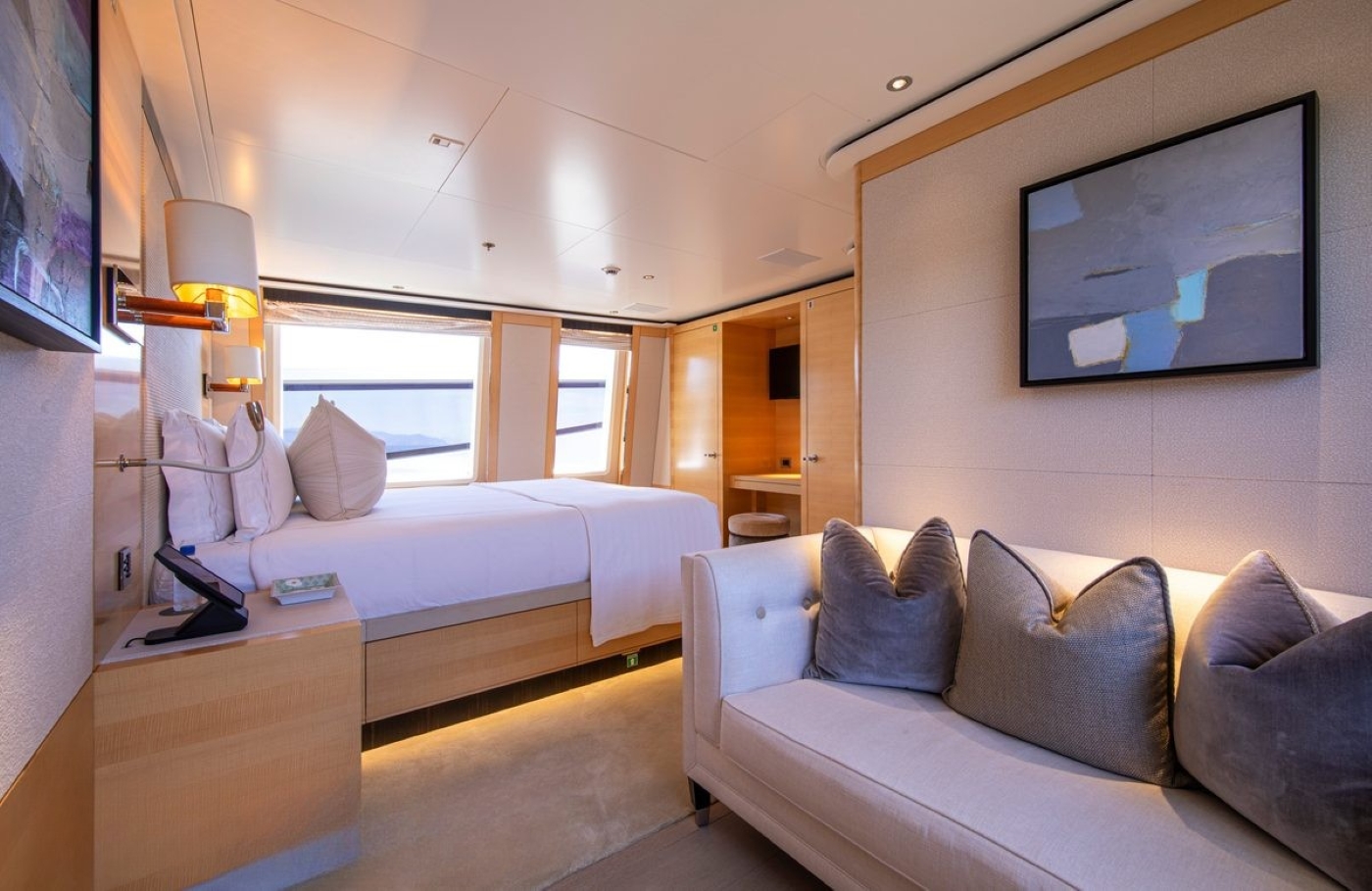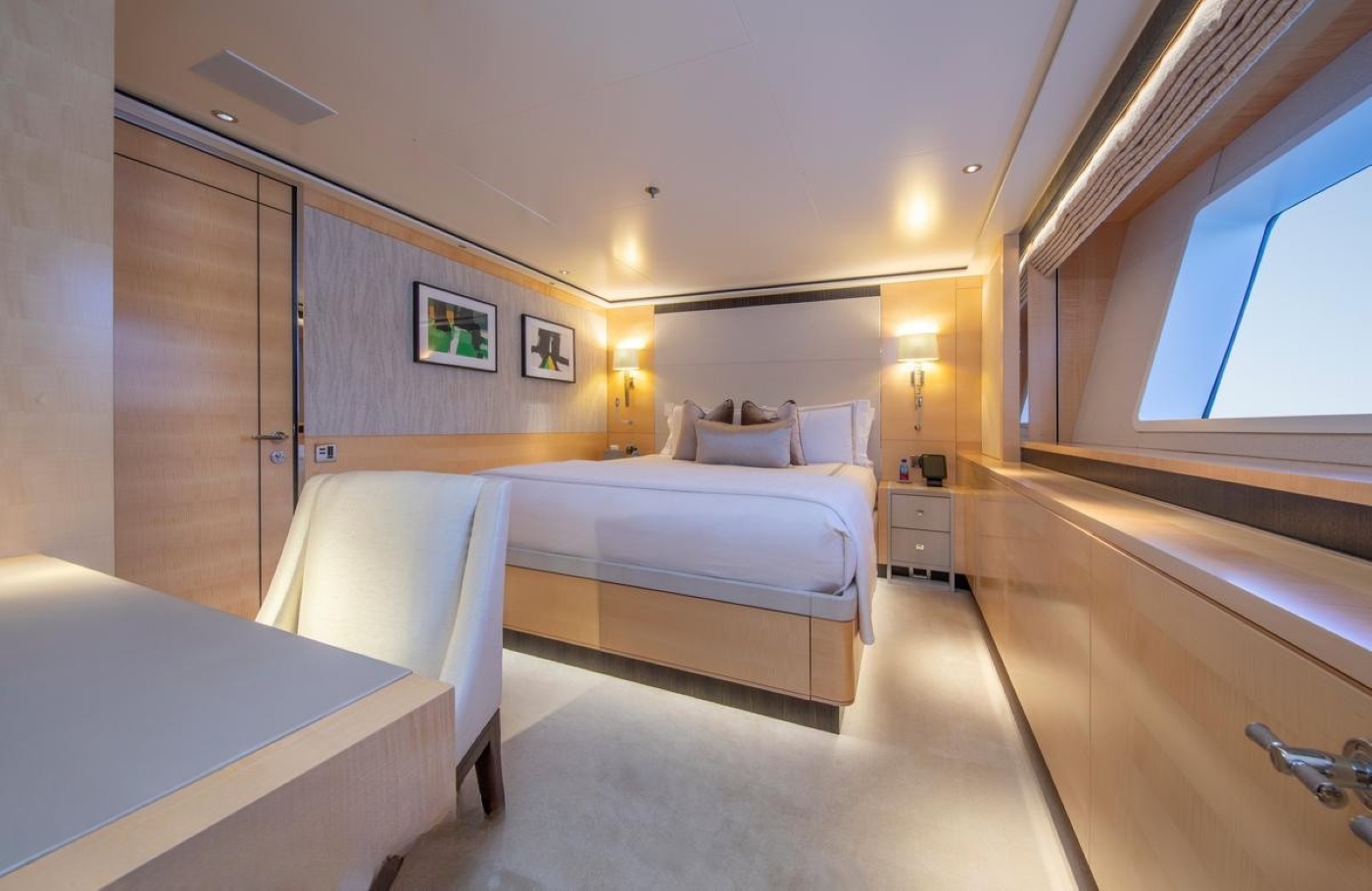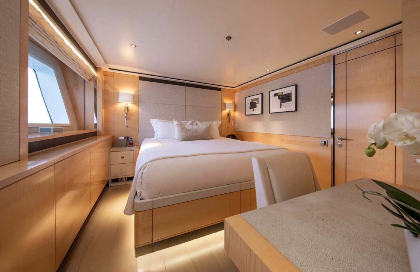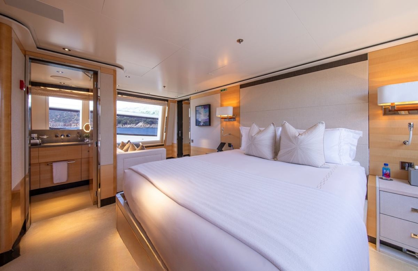 Luxury yacht LADY VICTORIA boasts a unique accommodation layout for up to 10 guests, with the entire upper deck dedicated to the Owner. Fitted with a six-seat dining table on the aft deck and a comfortable saloon, the owner’s cabin can be found in the forward section. There are also five lovely guest cabins, including three twin, a double as well as a VIP. KISS yacht's professional crew of 9 sleep in 6 crew cabins.